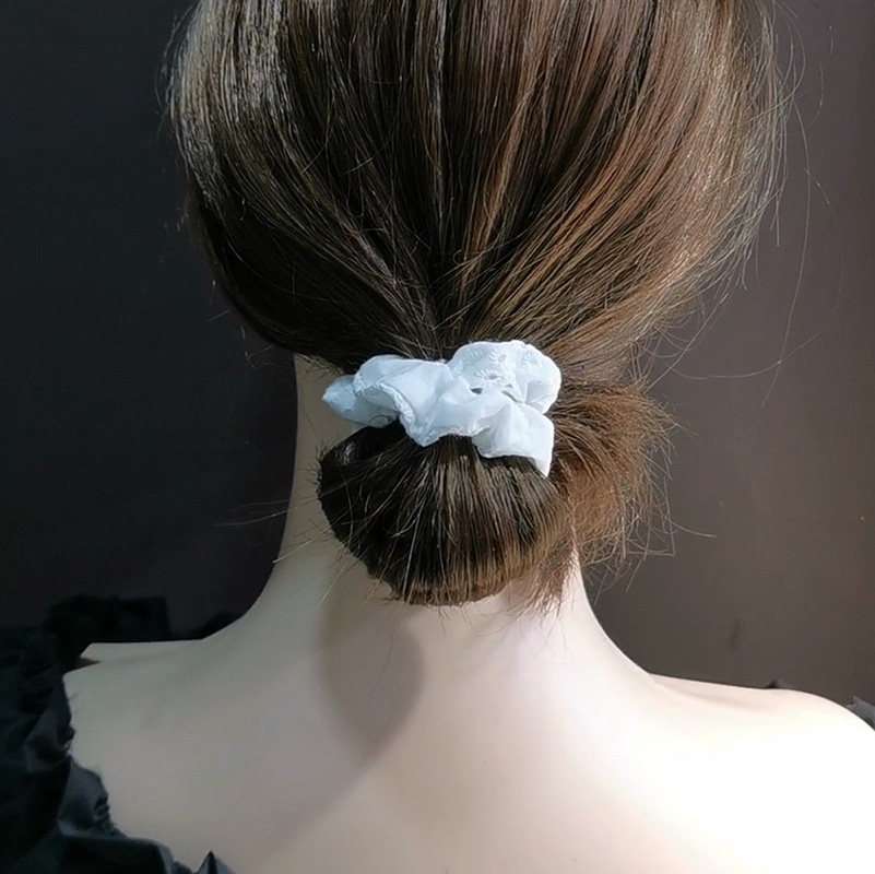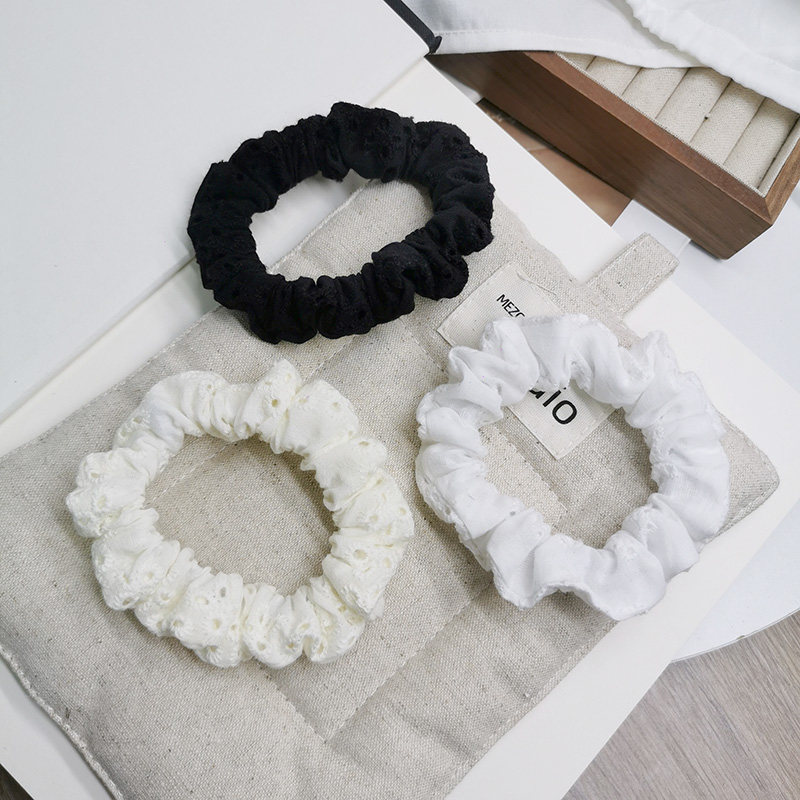 法式纯棉刺绣小肠发圈高级感高弹力基础发绳低马尾丸子头发饰韩版