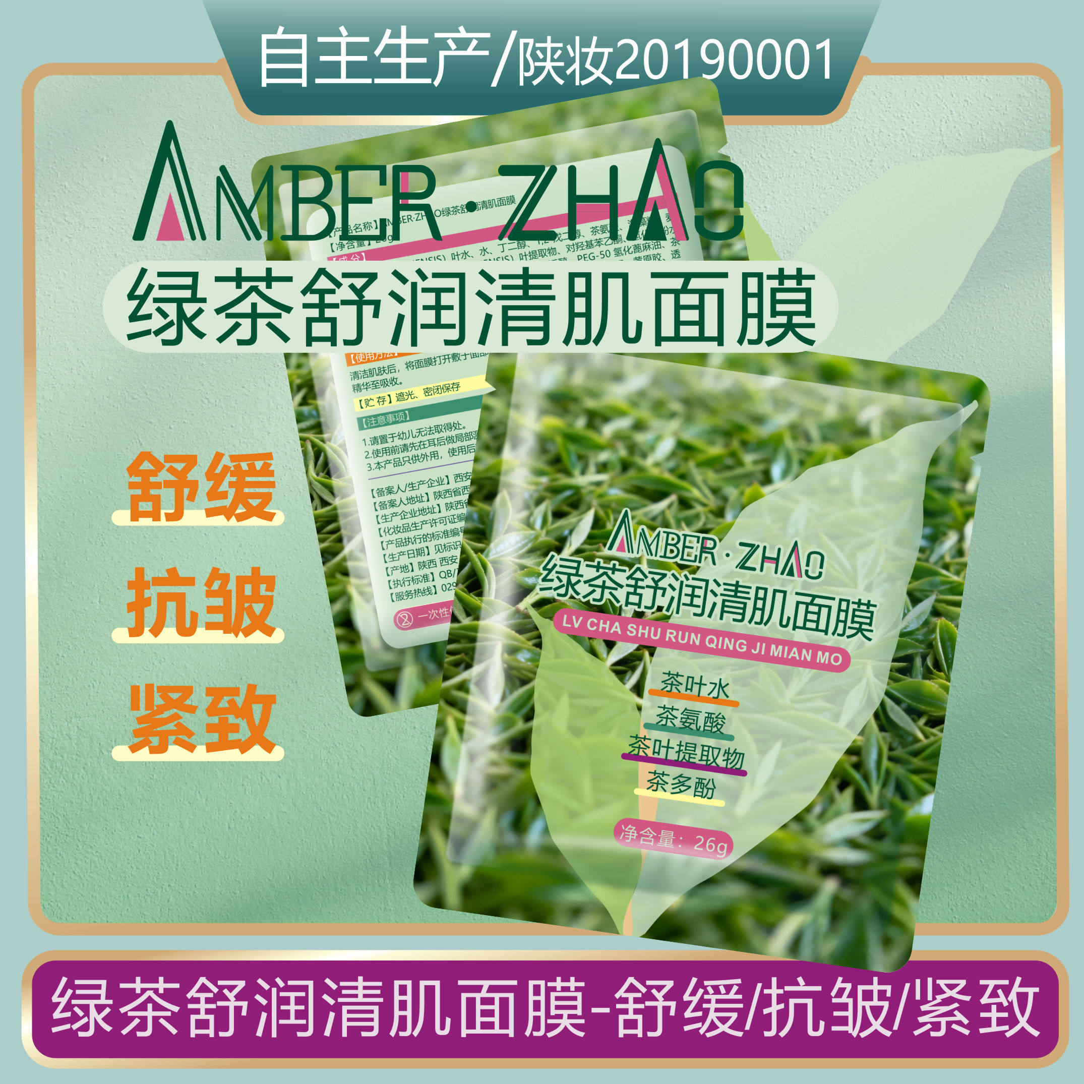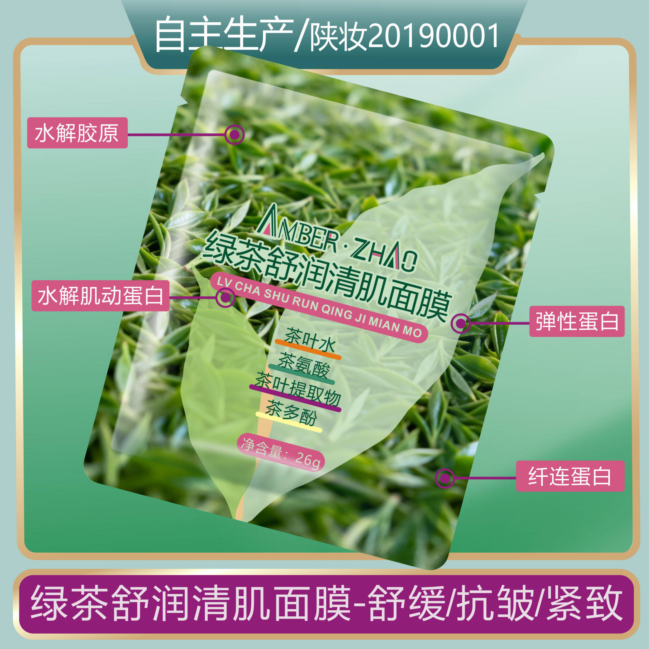 绿茶舒润清肌面膜-舒缓抗皱紧致肌肤贴片茶叶水茶氨酸茶多酚