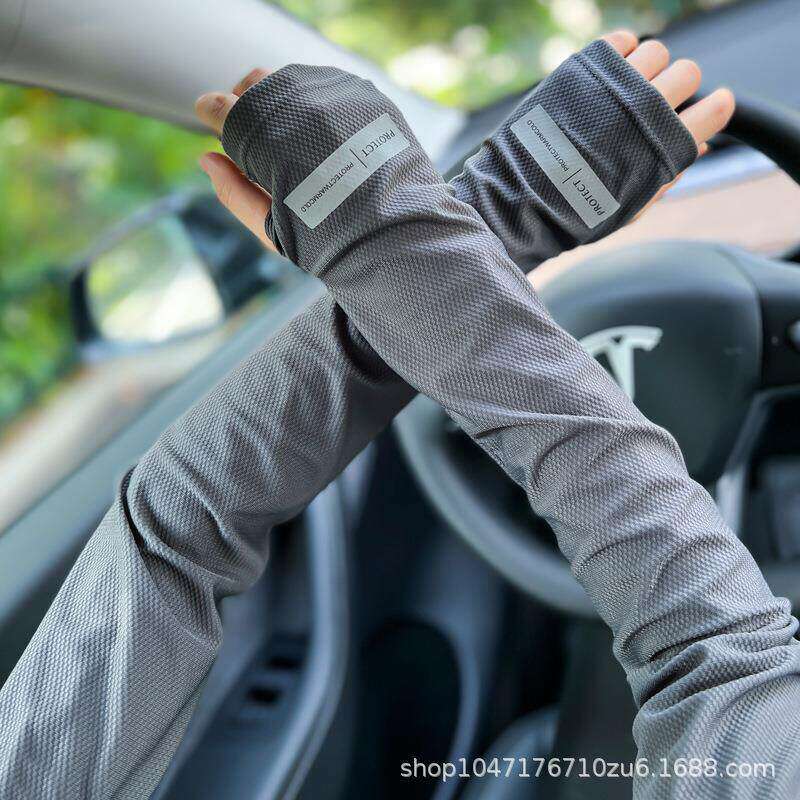 夏季防晒冰袖男士冰袖护臂透气大码宽松子字母防紫外线反光标冰袖