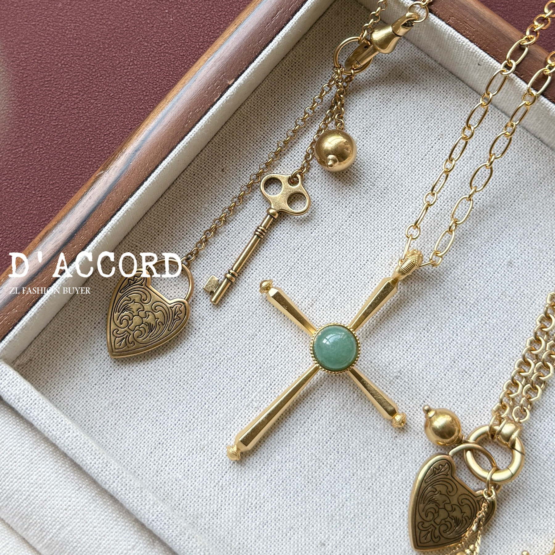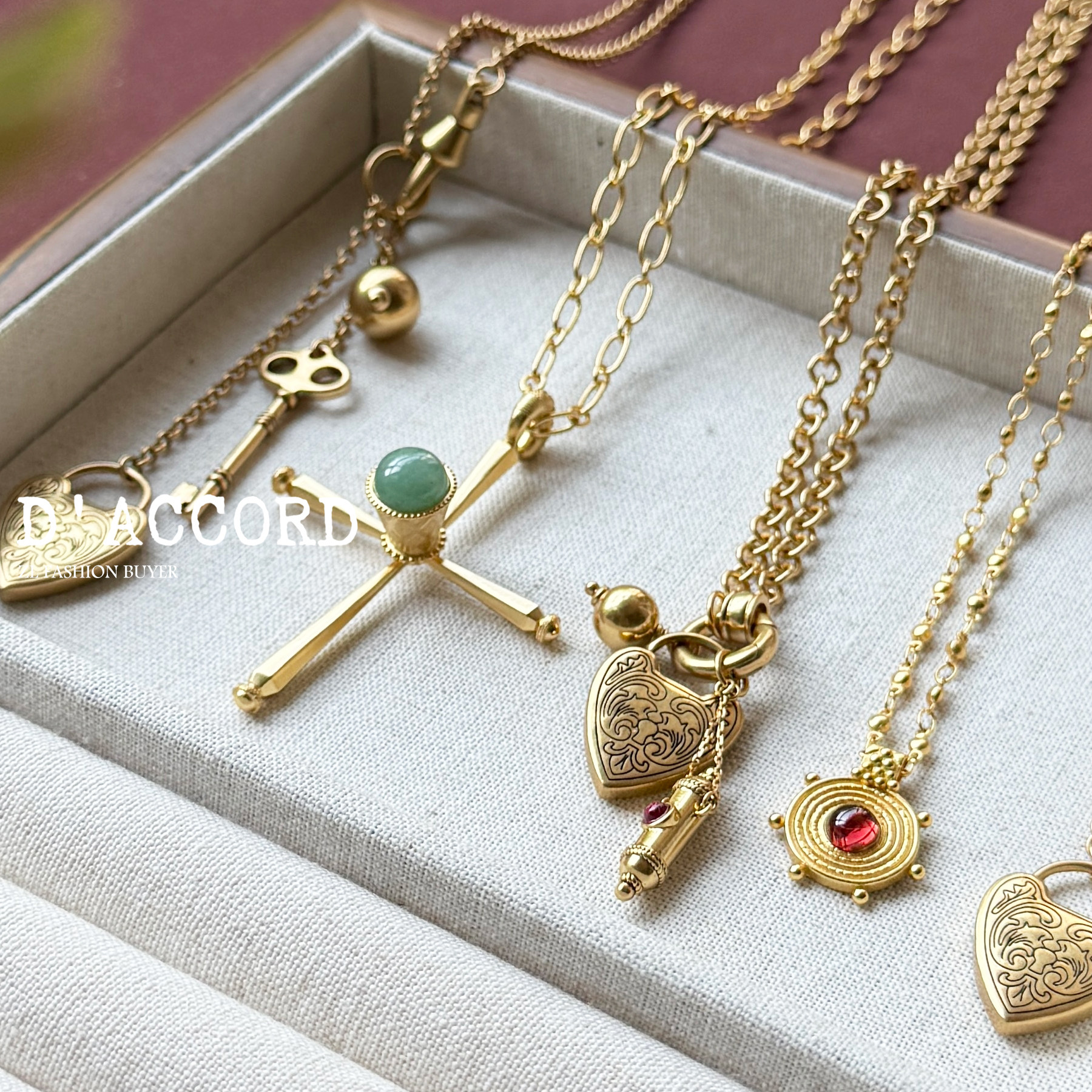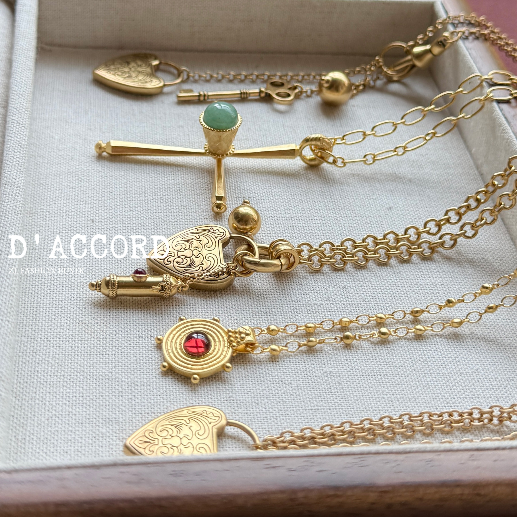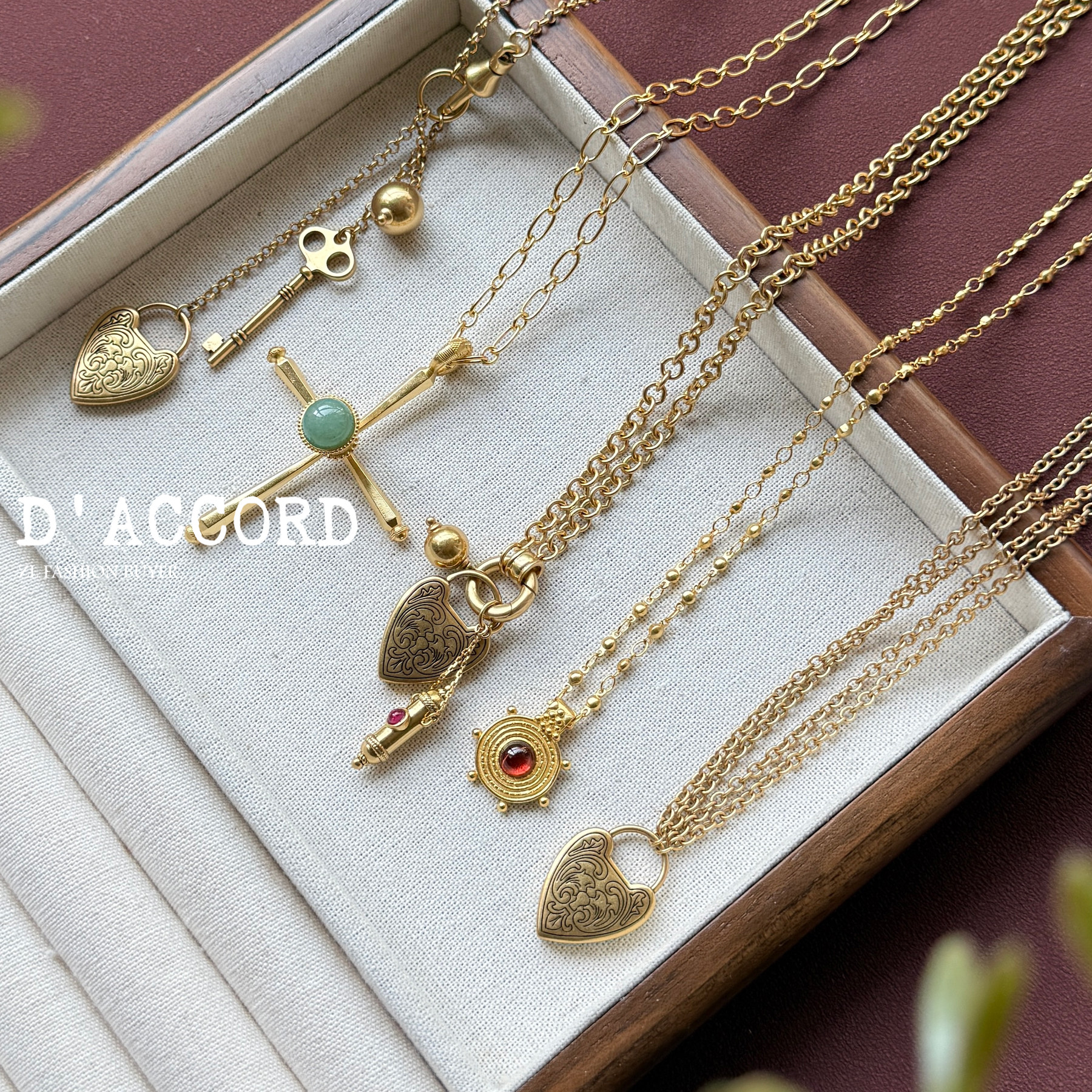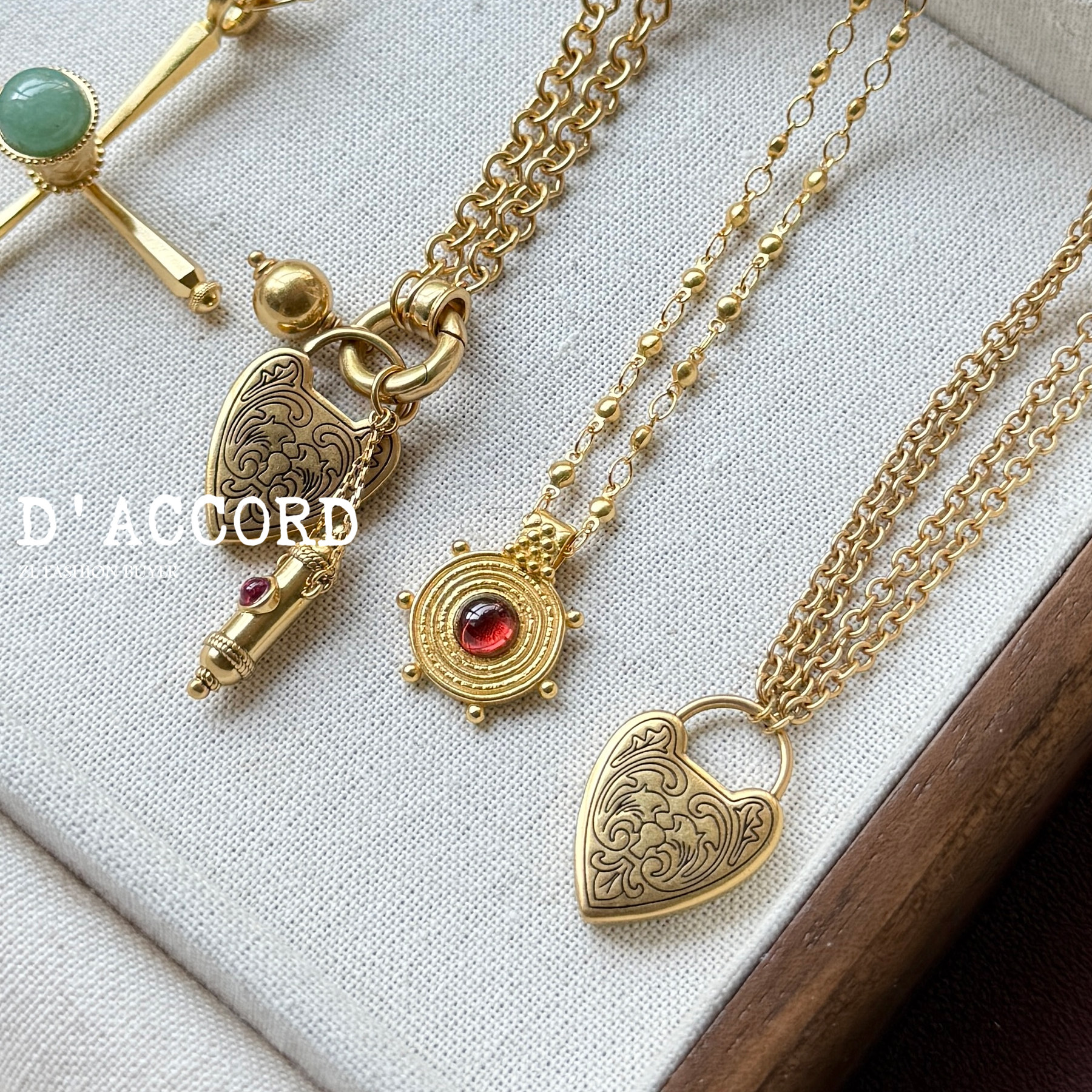 现货DACCORD罗马鎏金雕刻系列心形叠戴高级复古项链 戚薇同款