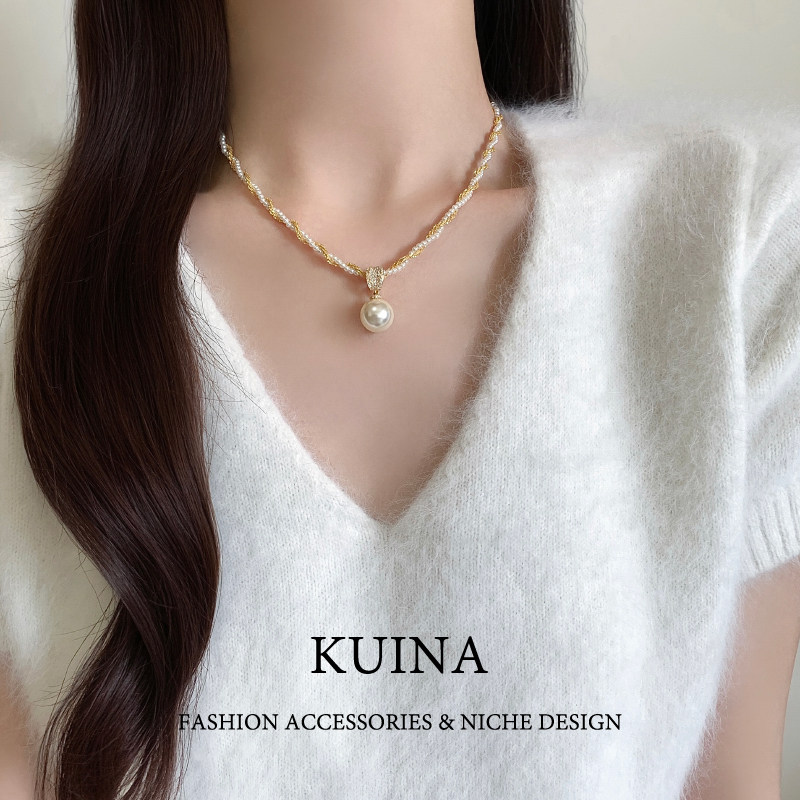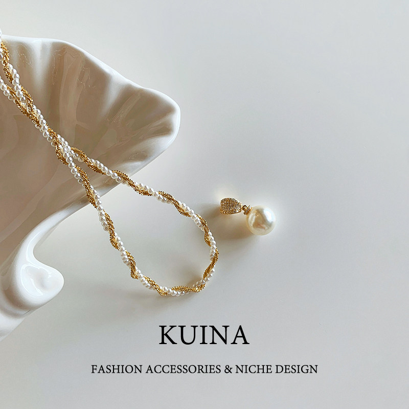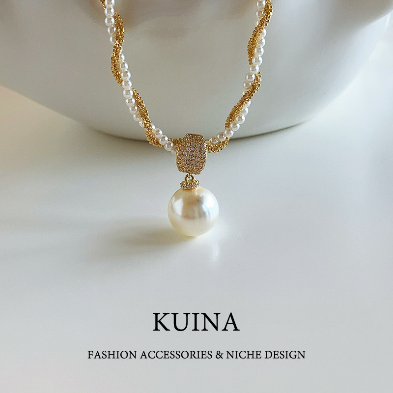 法式复古双层叠戴项链女珍珠吊坠轻奢小众锁骨链颈链2026新款配饰