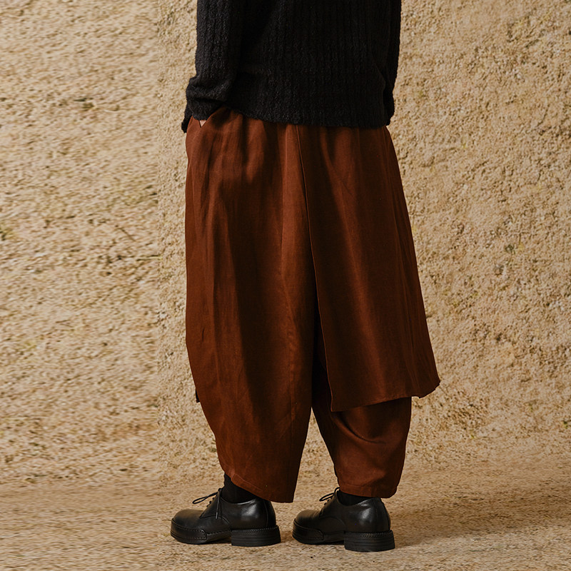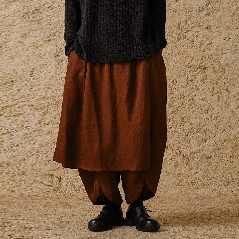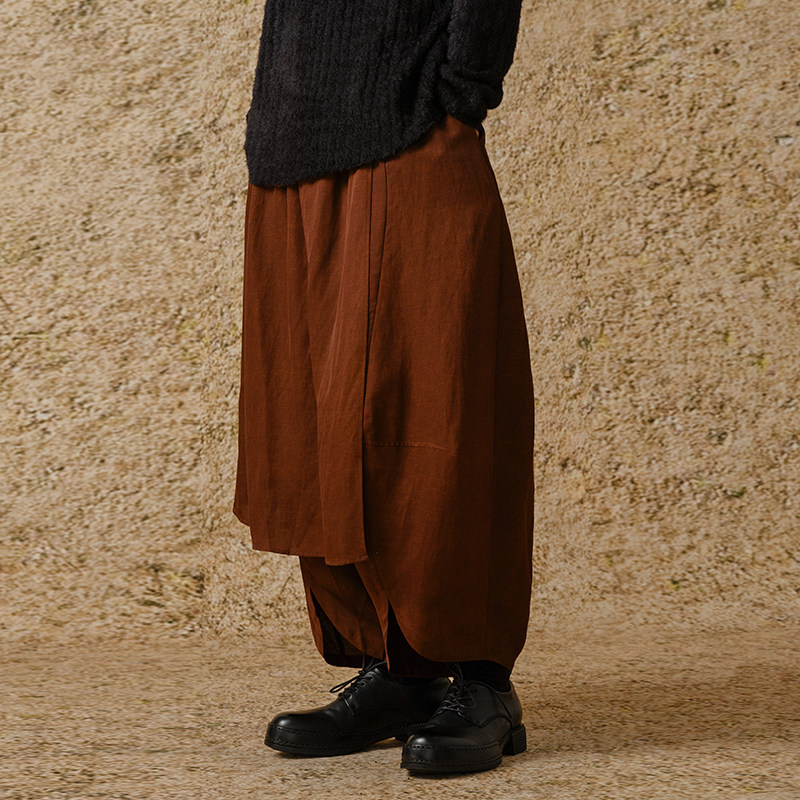 【MORIN KHUUR 牧仁】弧线多层宽松裙裤长裤