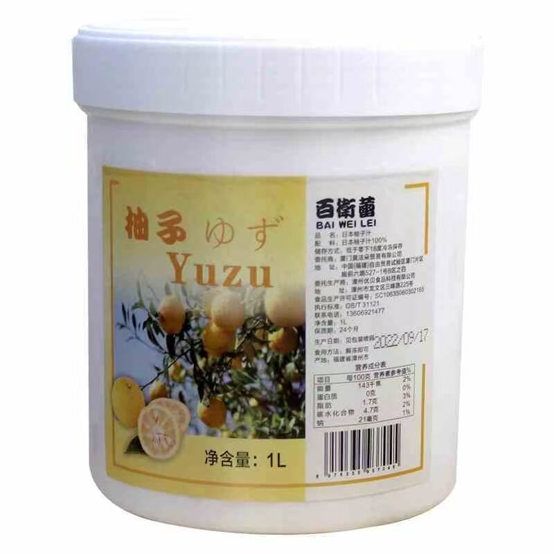 【顺丰】百卫蕾日本柚子汁 国产yuzu果茸速冻果泥酱果蓉小柚子1L