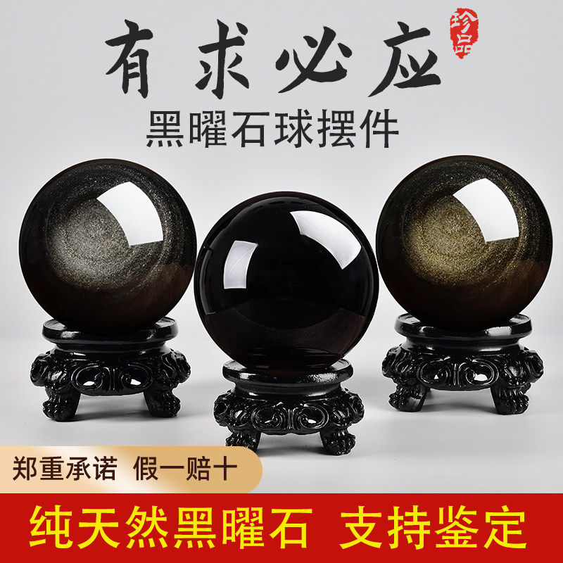 金曜石水晶球暗藏金光彩虹眼天然黑曜石球原石摆件客厅玄关装饰品