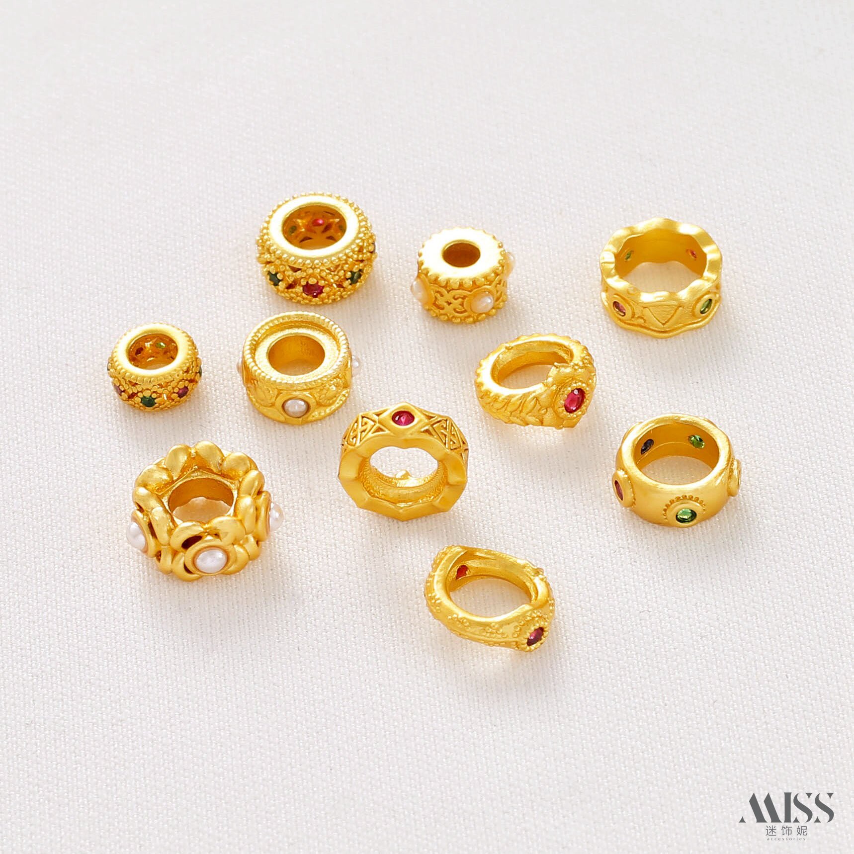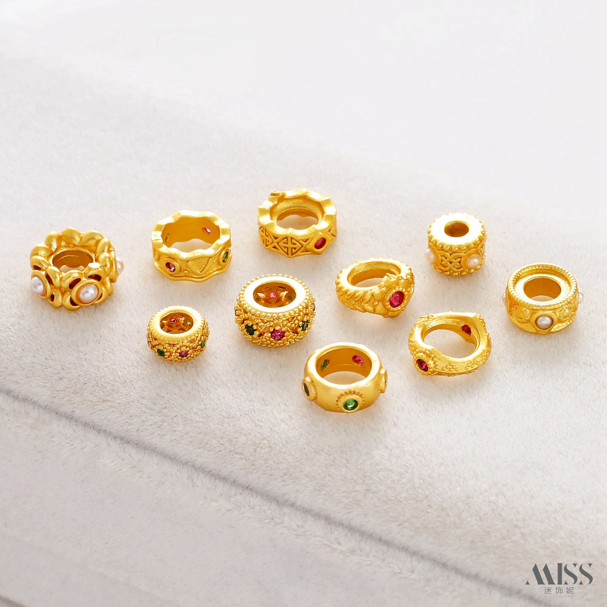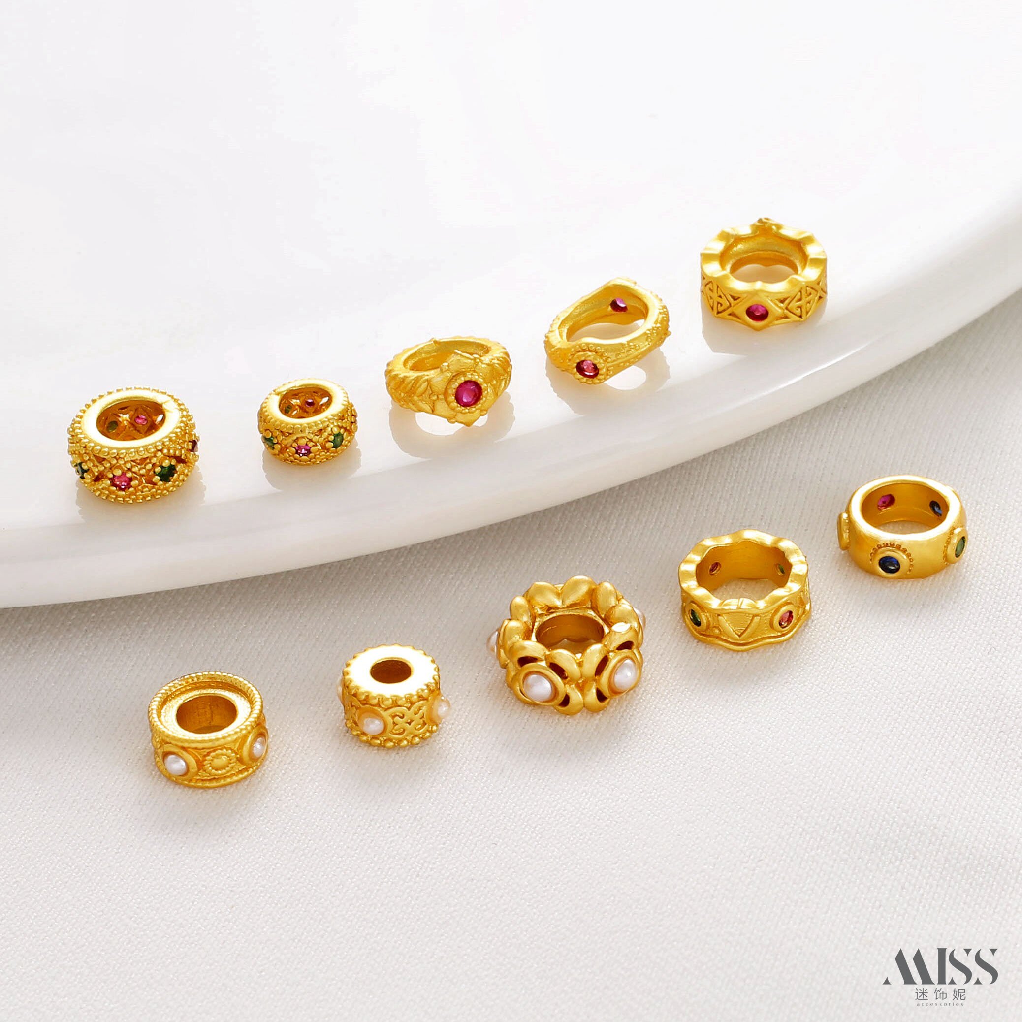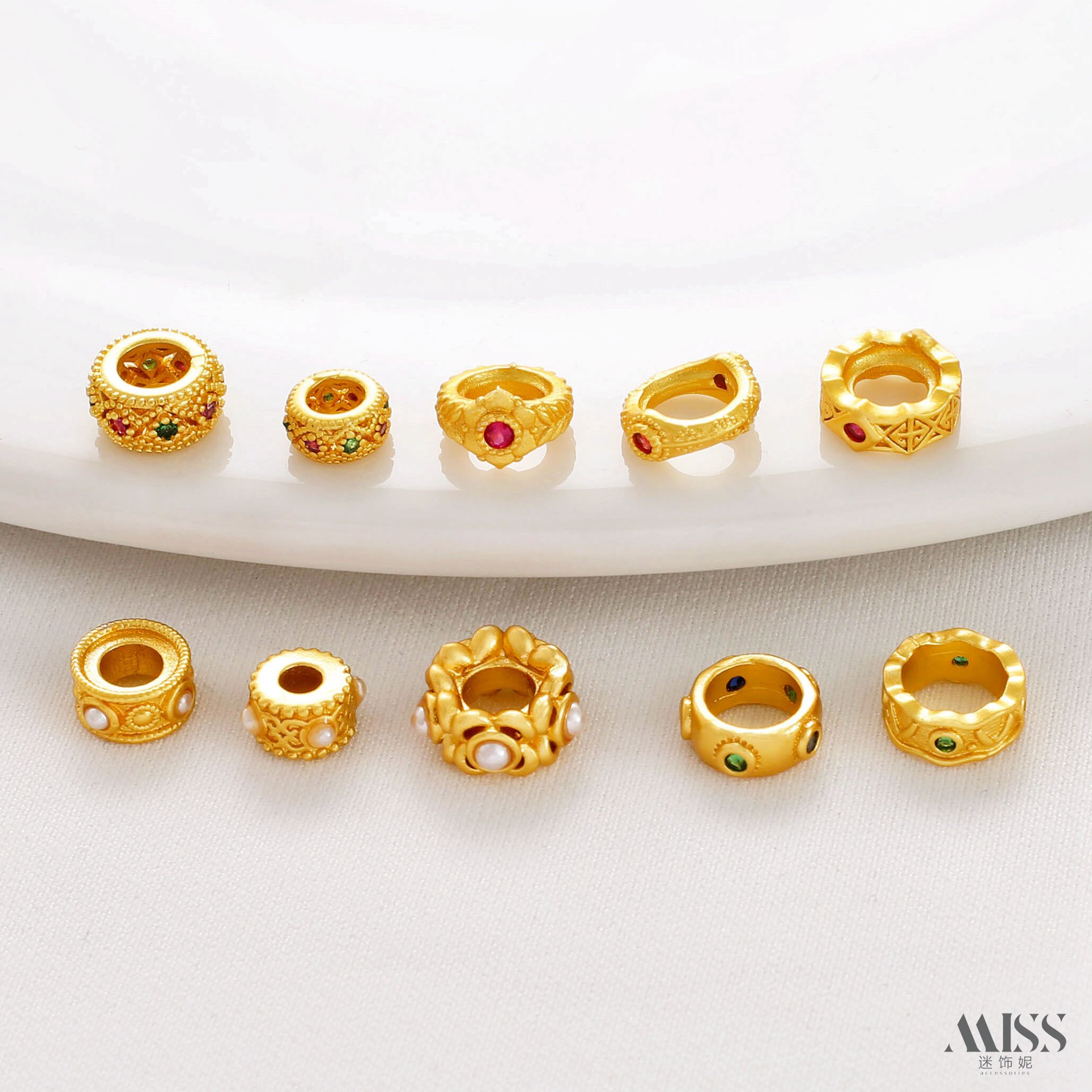 哑金18K包金保色镶锆石贝珠大孔隔珠隔圈diy垫珠手链项链饰品配件