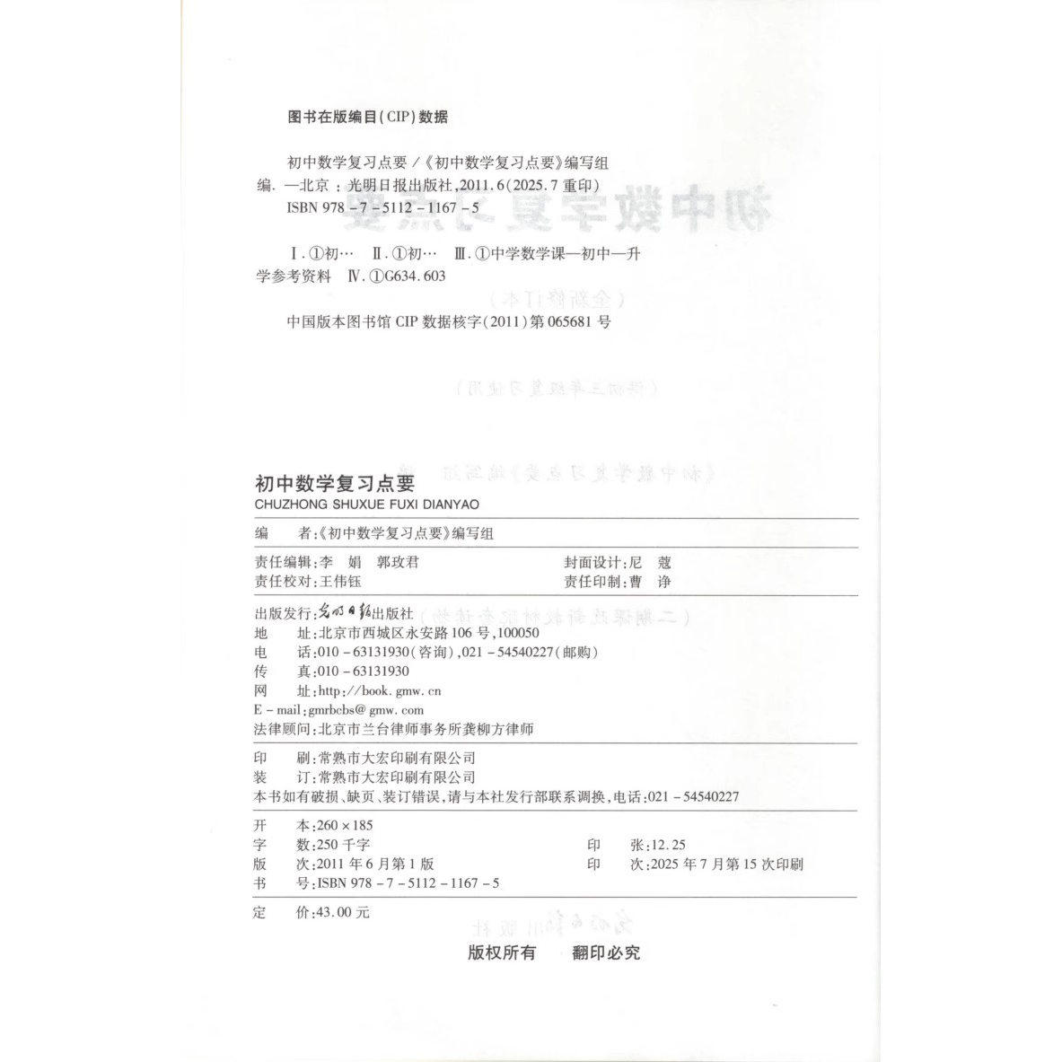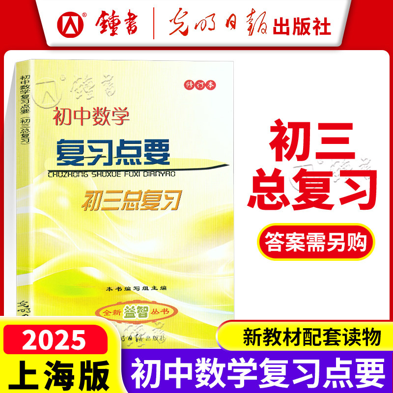 2025-2026初中数学复习点要+参考答案 初三中考总复习修订本 上海九年级数学知识梳理考点整合光明日报 初三数学中考总复习用书