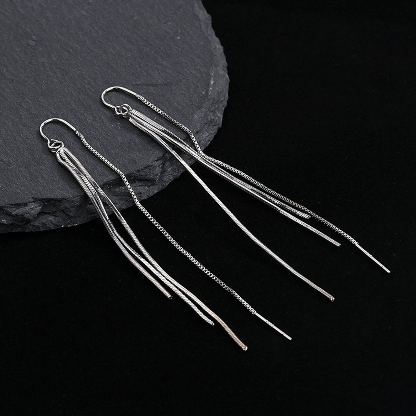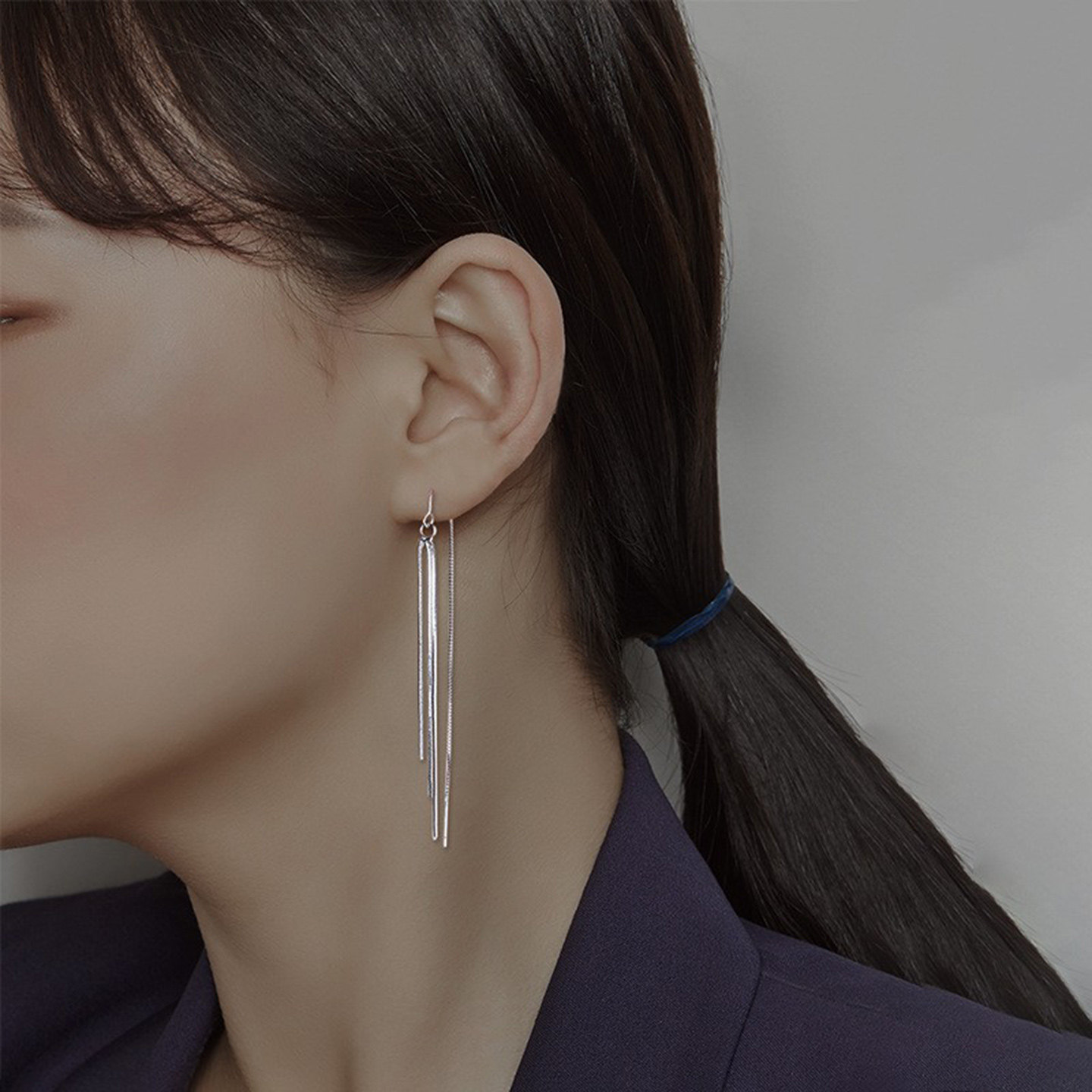 925银针蛇骨链流苏耳线女ins小众设计感气质简约高级感显脸瘦耳环