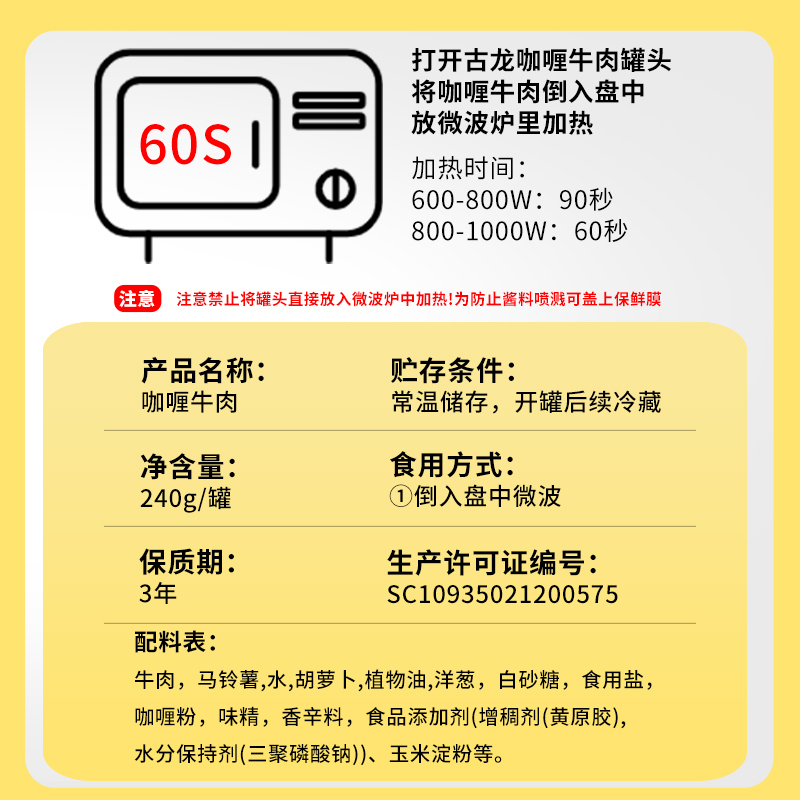 古龙咖喱牛肉罐头240g*6罐户外开罐即食午餐肉制品拌饭拌面储备品