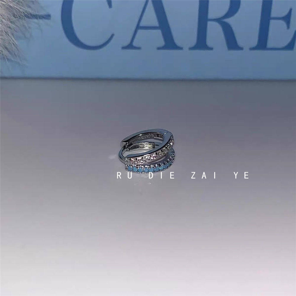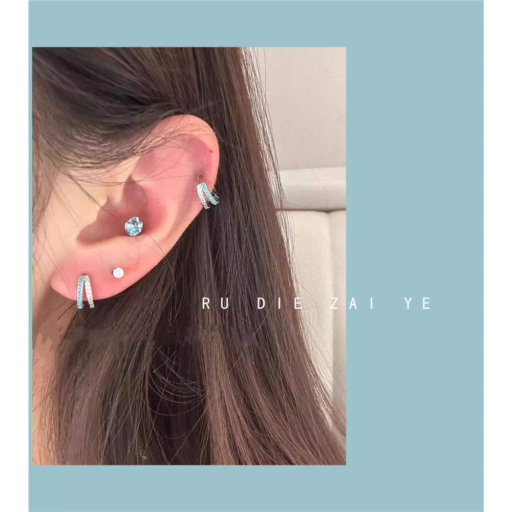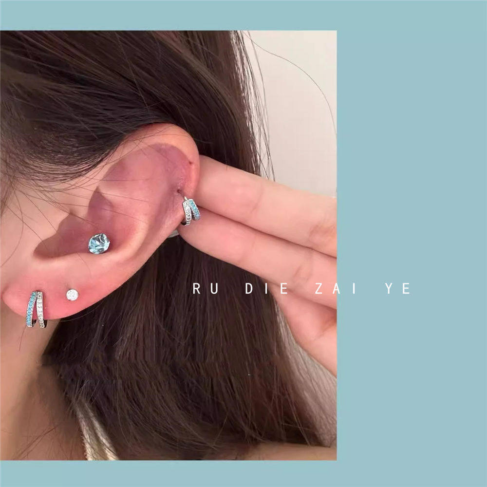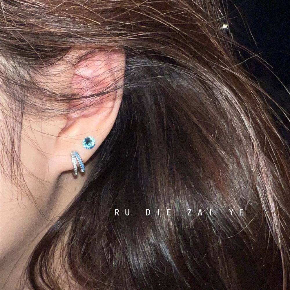 如蝶在野 超闪碎冰蓝华子钛钢耳骨钉蓝色ins耳骨环耳圈叠带耳钉