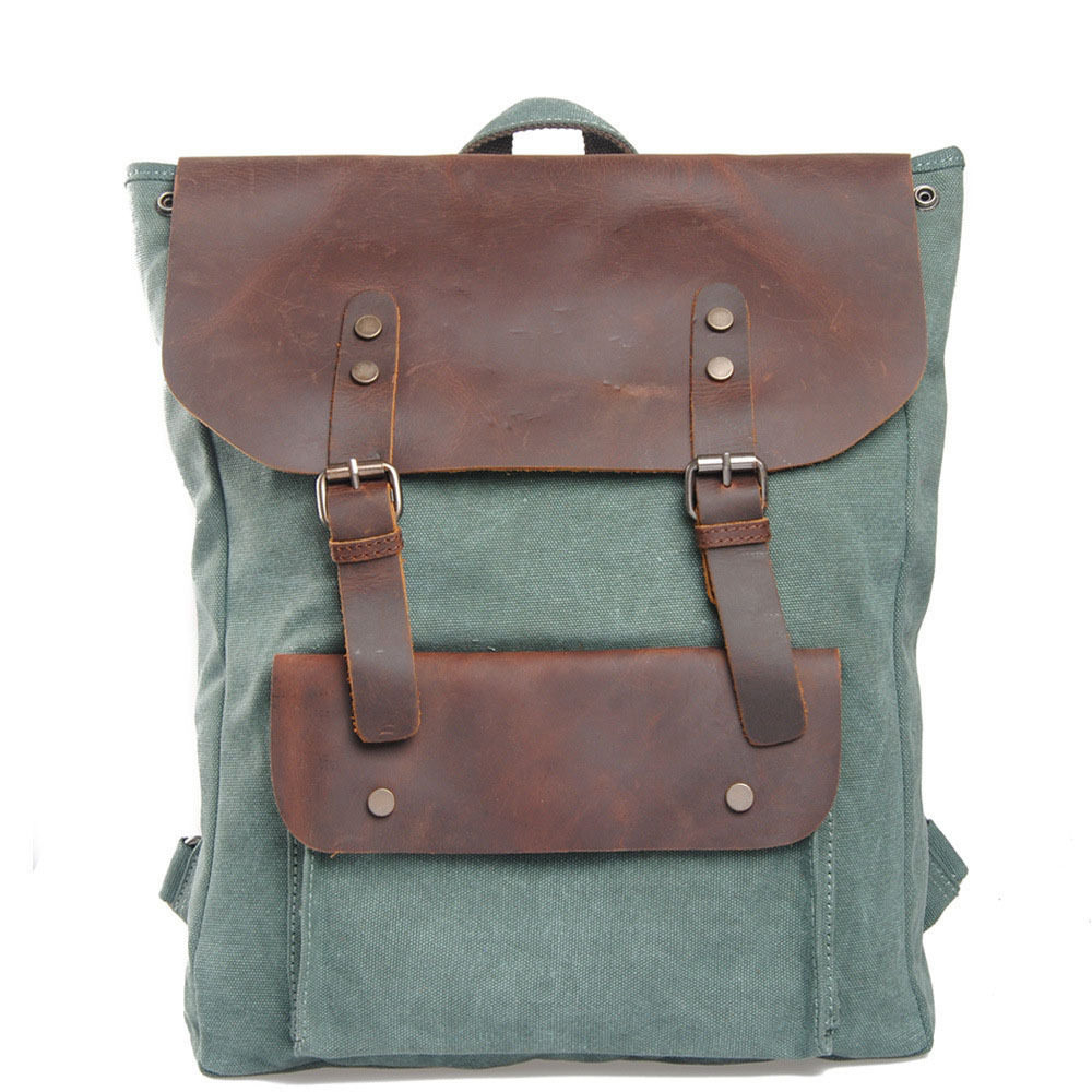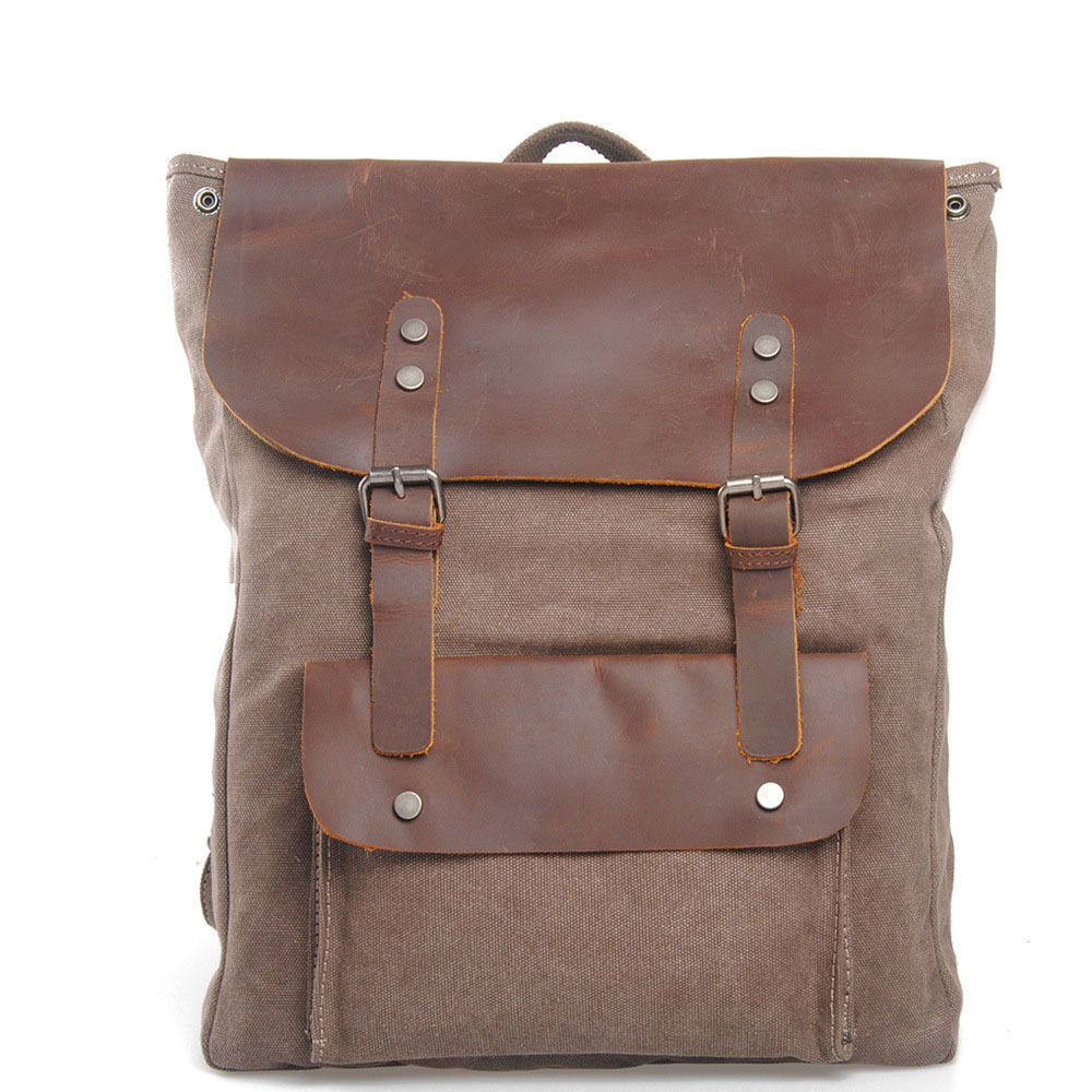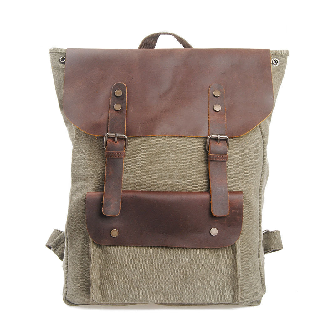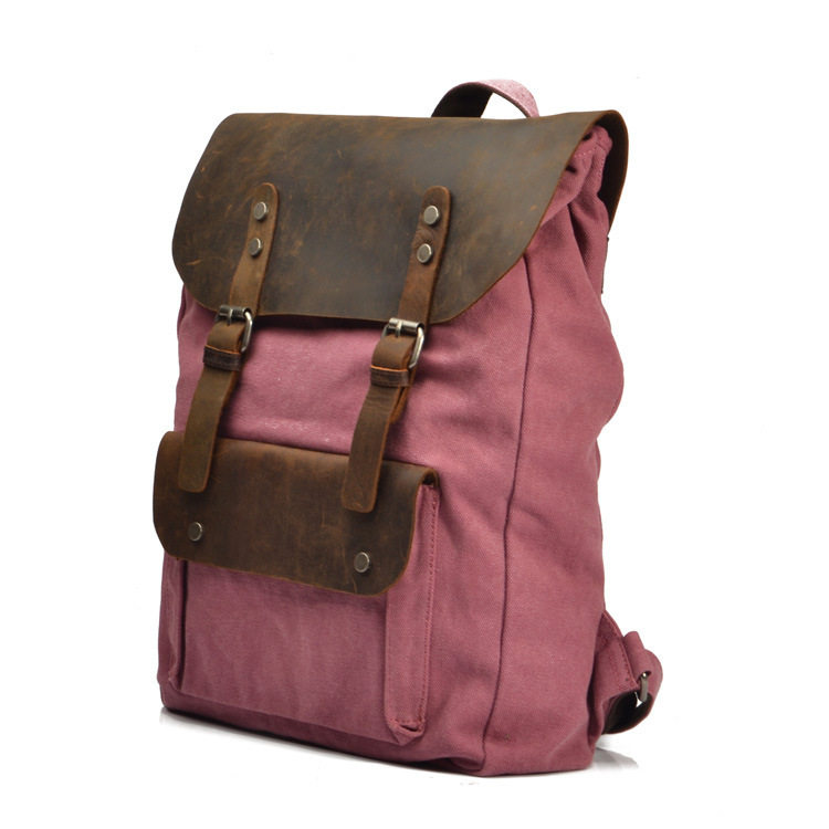 欧美百搭牧川真皮双肩包潮配学院旅行包休闲背包帆布书包女纯色