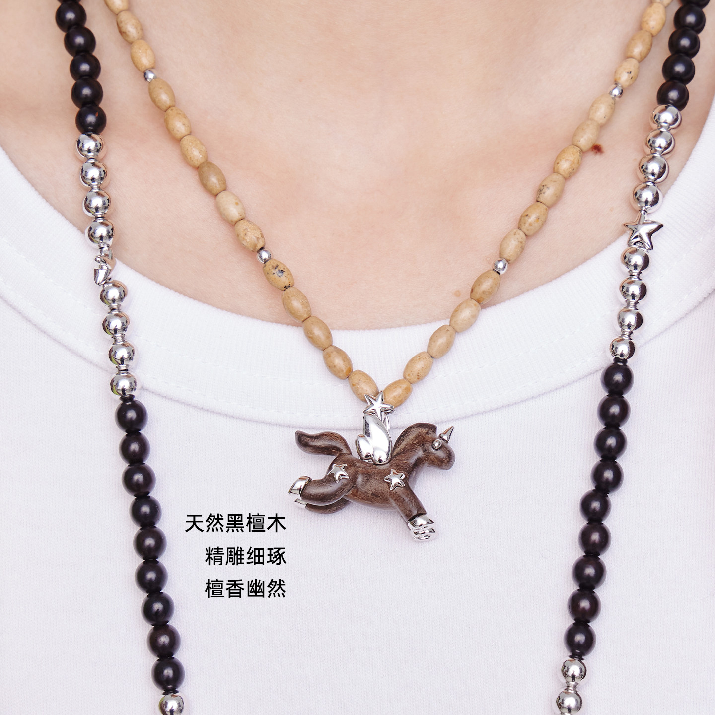 FWISH飞未夕 实木小马串珠项链节日生日礼物设计师款百搭新品马年