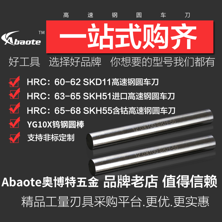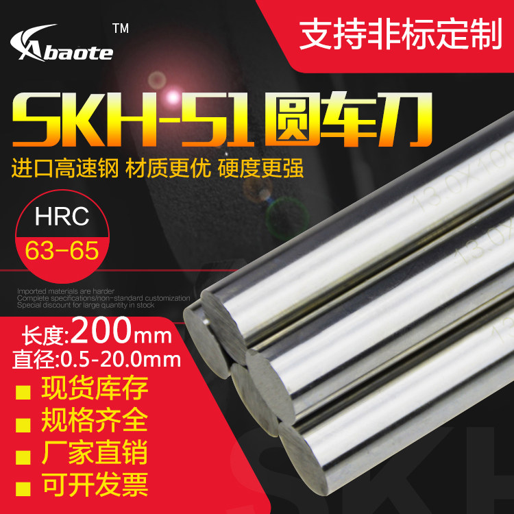 奥博特 SKH51进口高速钢圆棒圆车刀 0.5-25.0mm200mm加硬白钢直棒