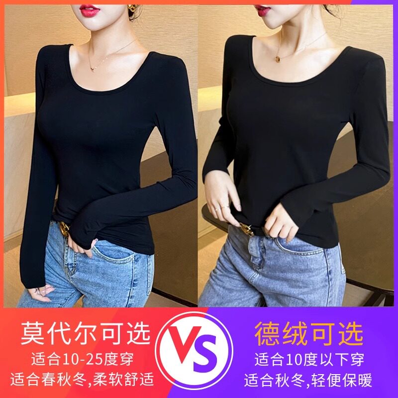 拉夏贝尔莫代尔U领打底衫女内搭2026春秋冬新款加绒保暖长袖上衣