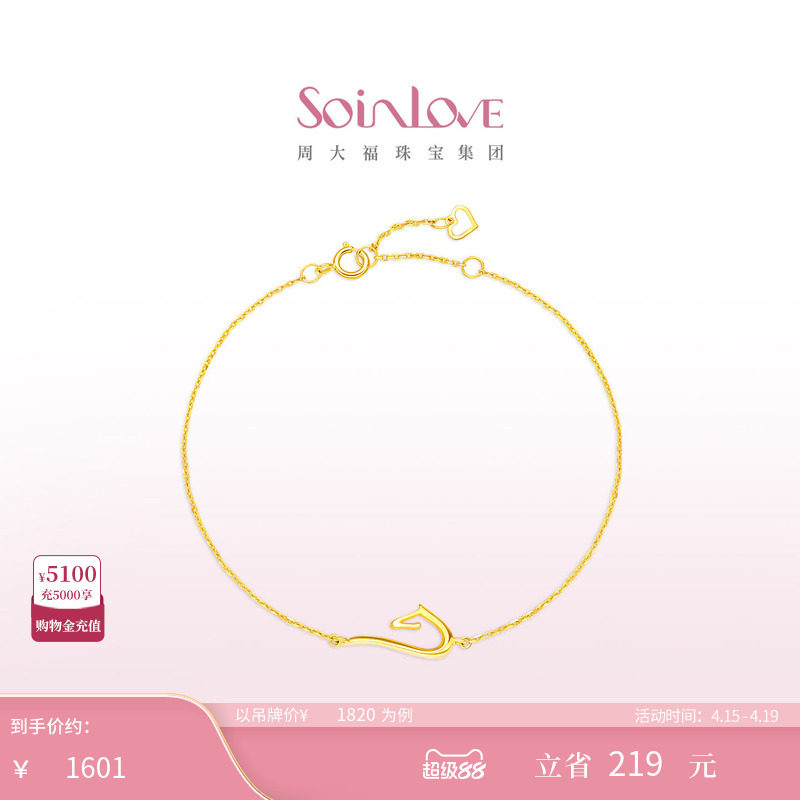 周大福SOINLOVE 极简系列驭风马18K金手链生肖马情侣生日礼物