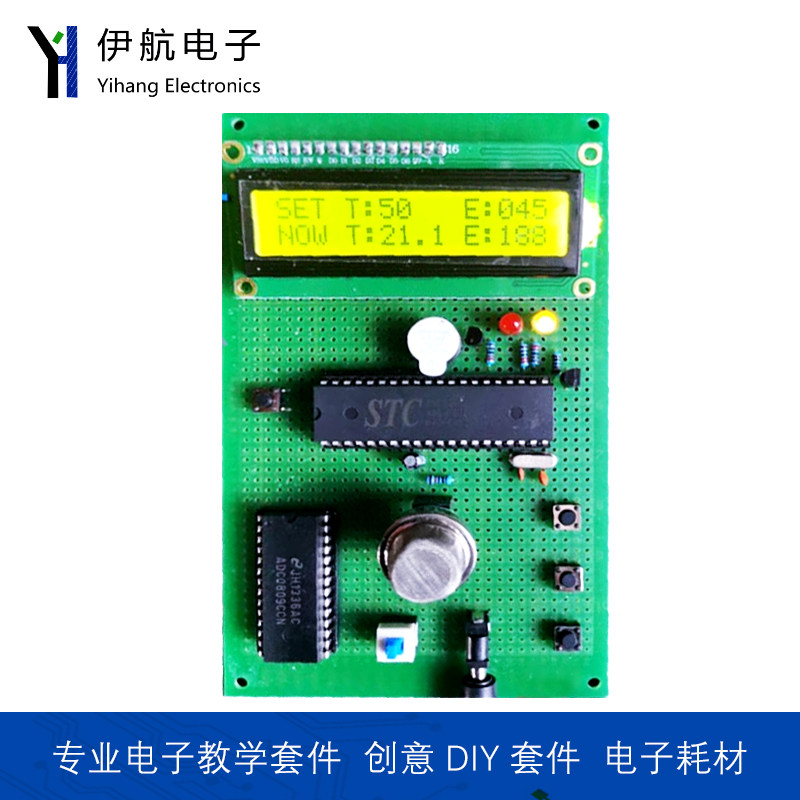 基于51单片机的火灾报警器温度烟雾检测系统实验套件学习板开发板