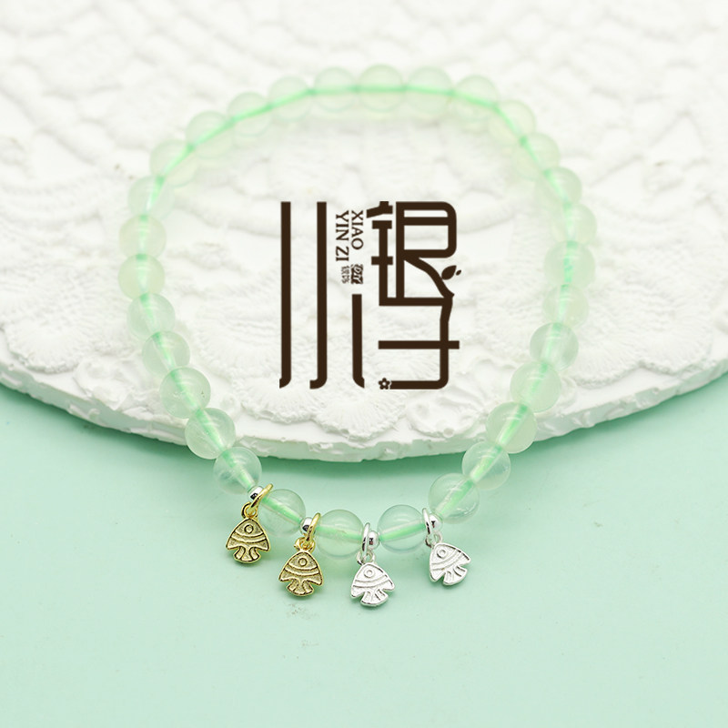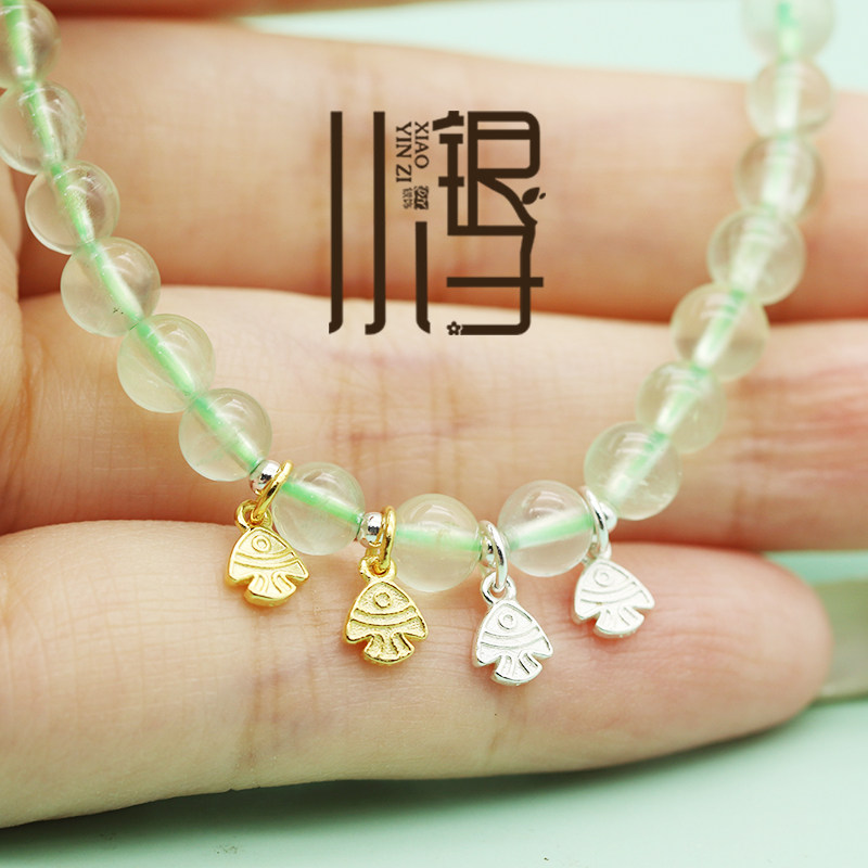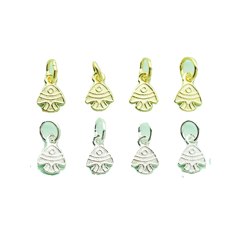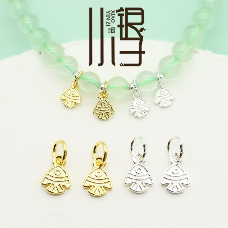 S925纯银吊坠 迷你双面小鱼金鱼银镀金挂坠DIY银饰品手链串珠配件