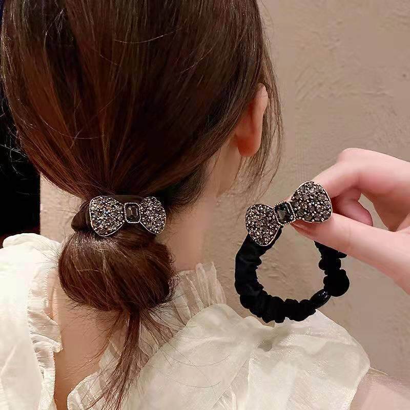 韩国东大门蝴蝶结水晶满钻发绳发圈复古扎马尾大肠圈头绳橡皮筋