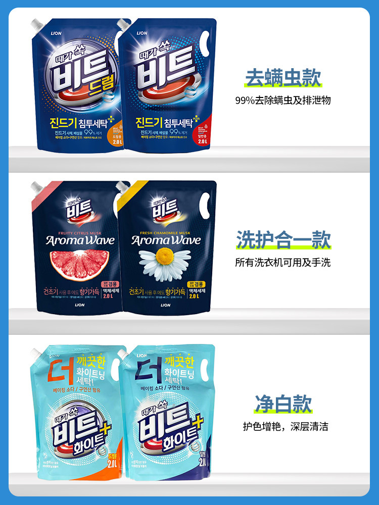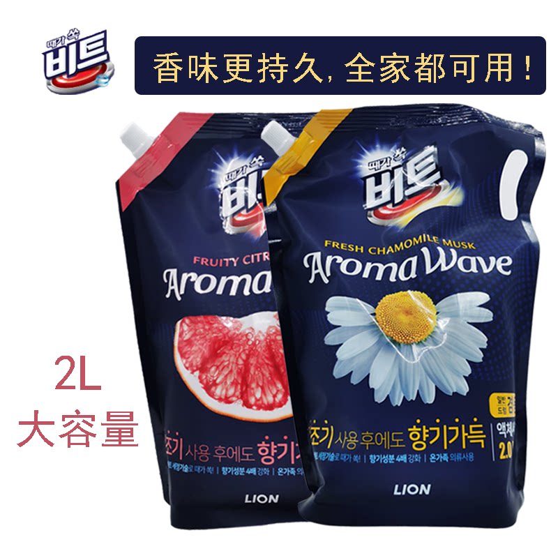 韩国进口正品lion狮王BEAT芳香洗衣液持久留香一般滚筒手洗2L袋装