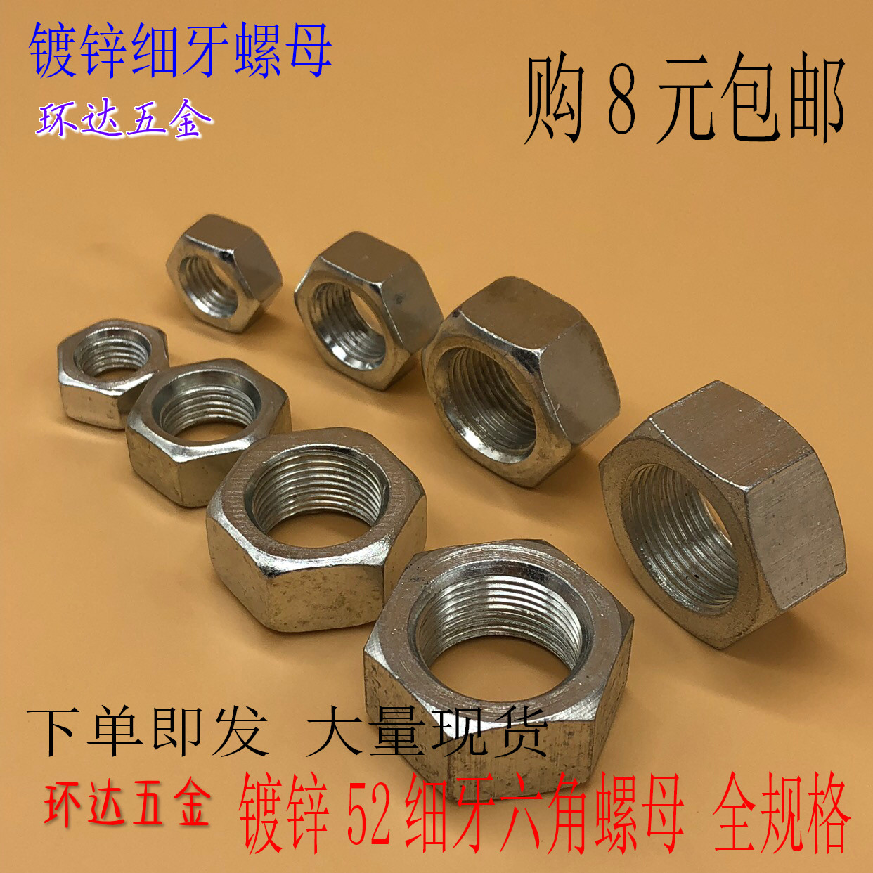 GB52镀锌六角细牙厚螺帽细牙螺母M8M12M14M16M18M20M22M30*1.5X2