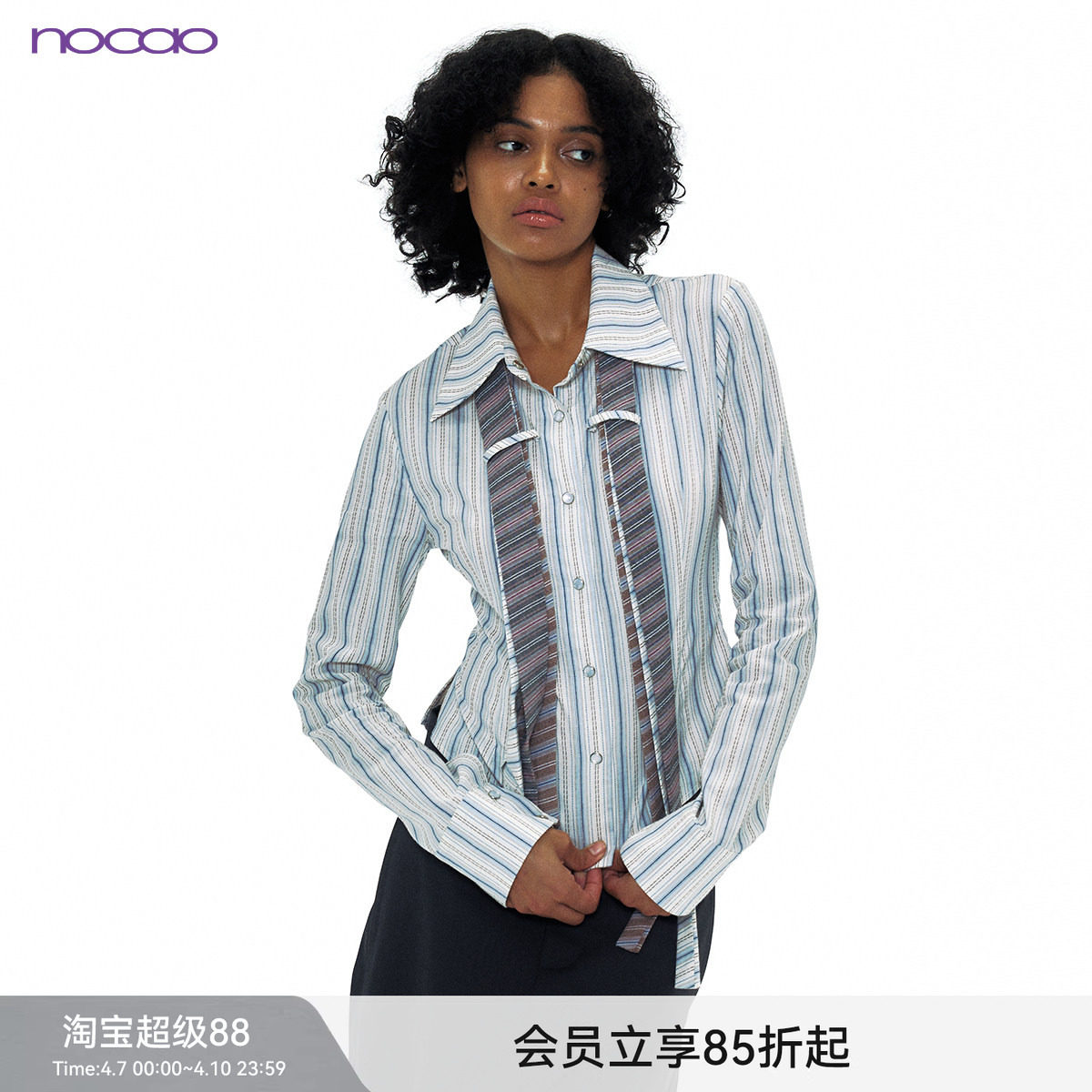 【多领带】BiLLconch 原创条纹复古修身收腰棉衬衫女衬衣春夏上衣