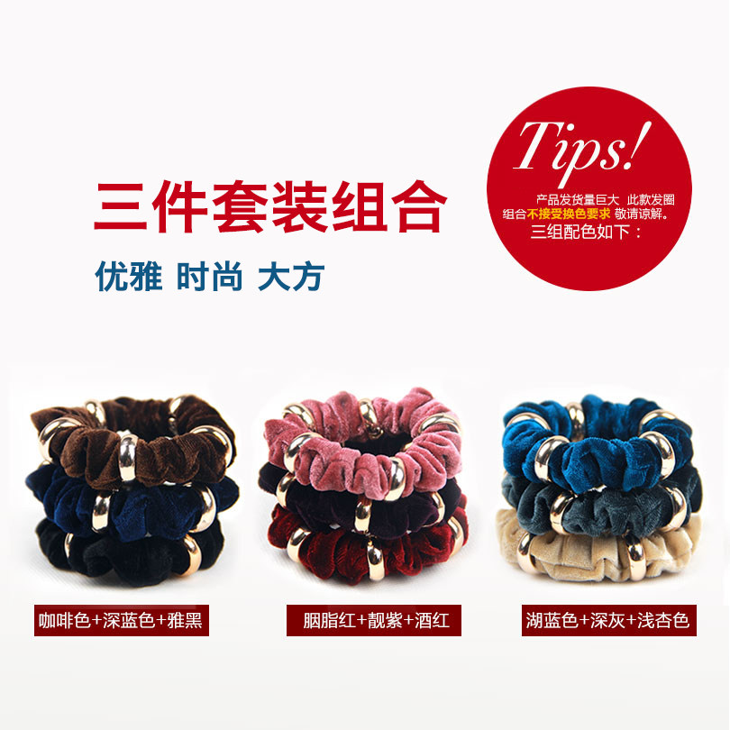 气质3件套韩国头绳发圈丝绒布女发绳扎头橡皮筋盘发女天鹅绒头饰