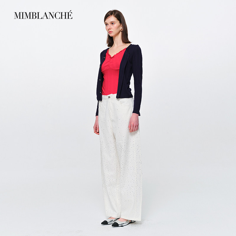 MIMBLANCHE设计感撞色假两件开衫上衣女