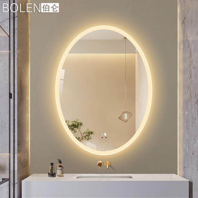 圆BLEN伯l仑ed灯O镜卫生间壁QRG挂墙厕所洗脸镜子椭浴室镜LED浴室
