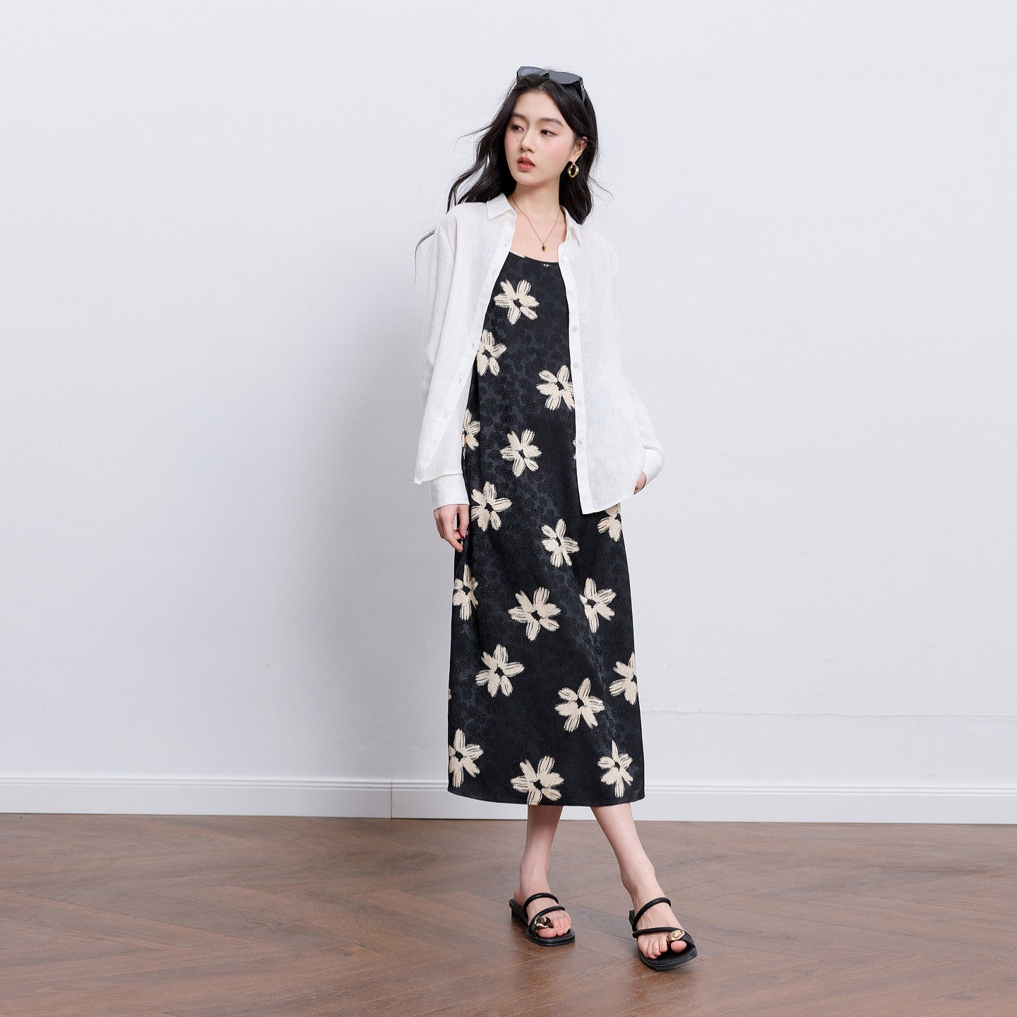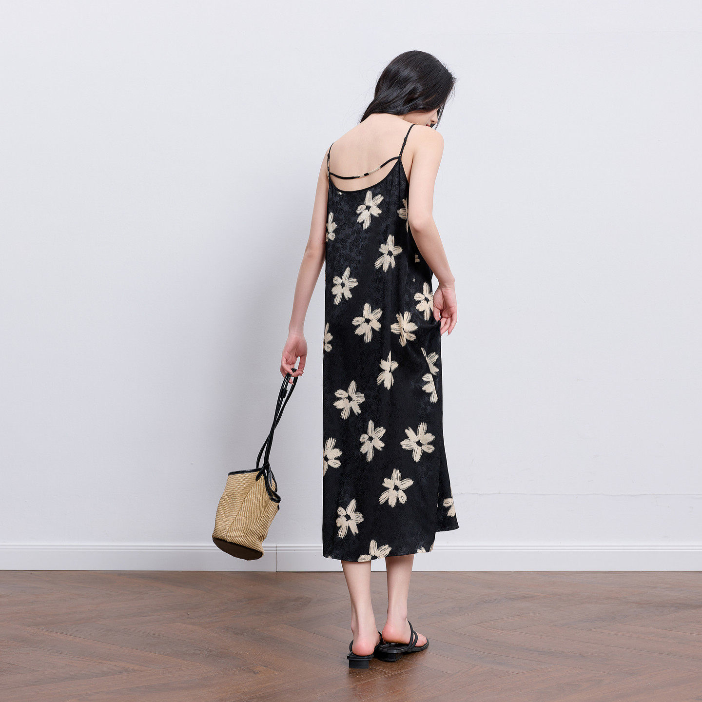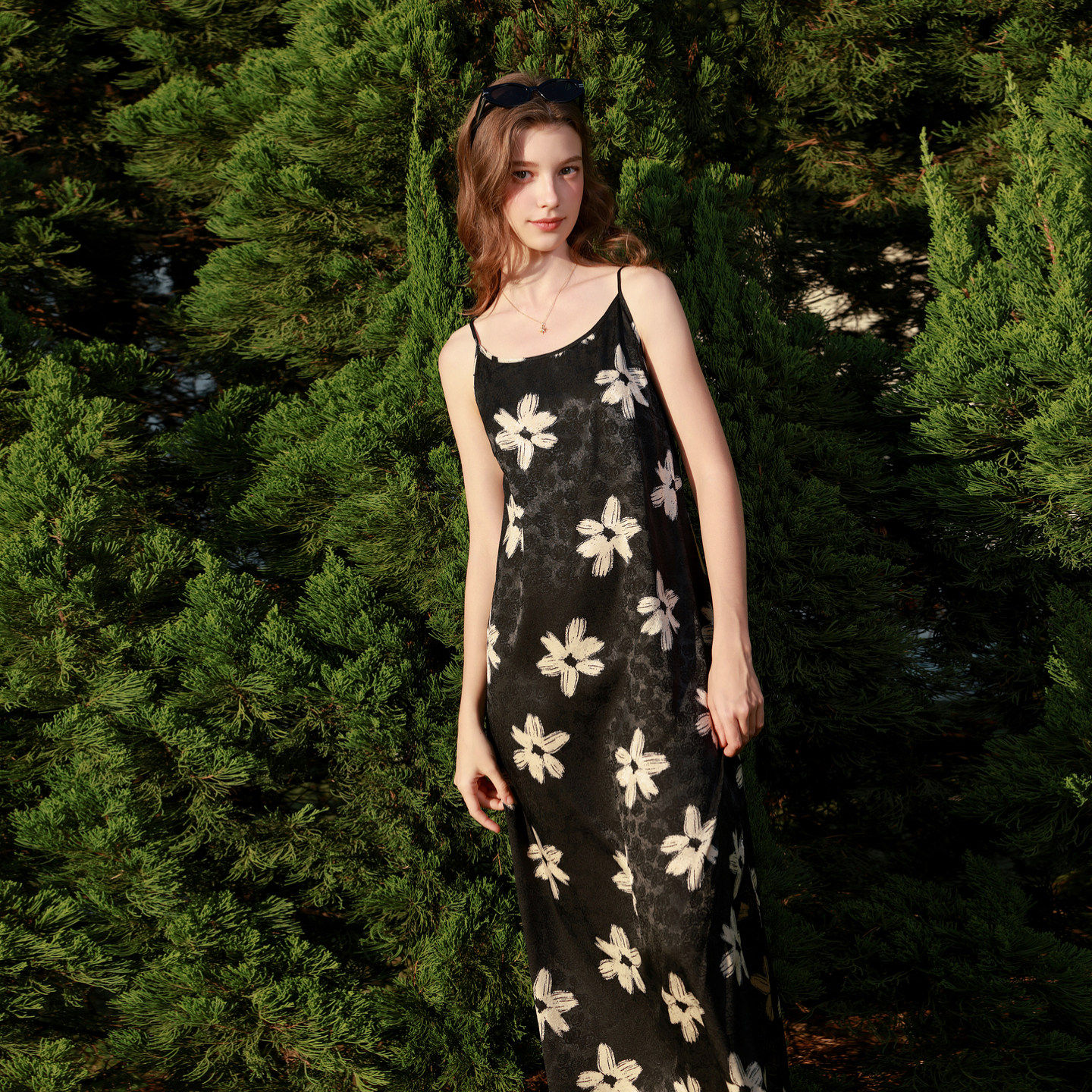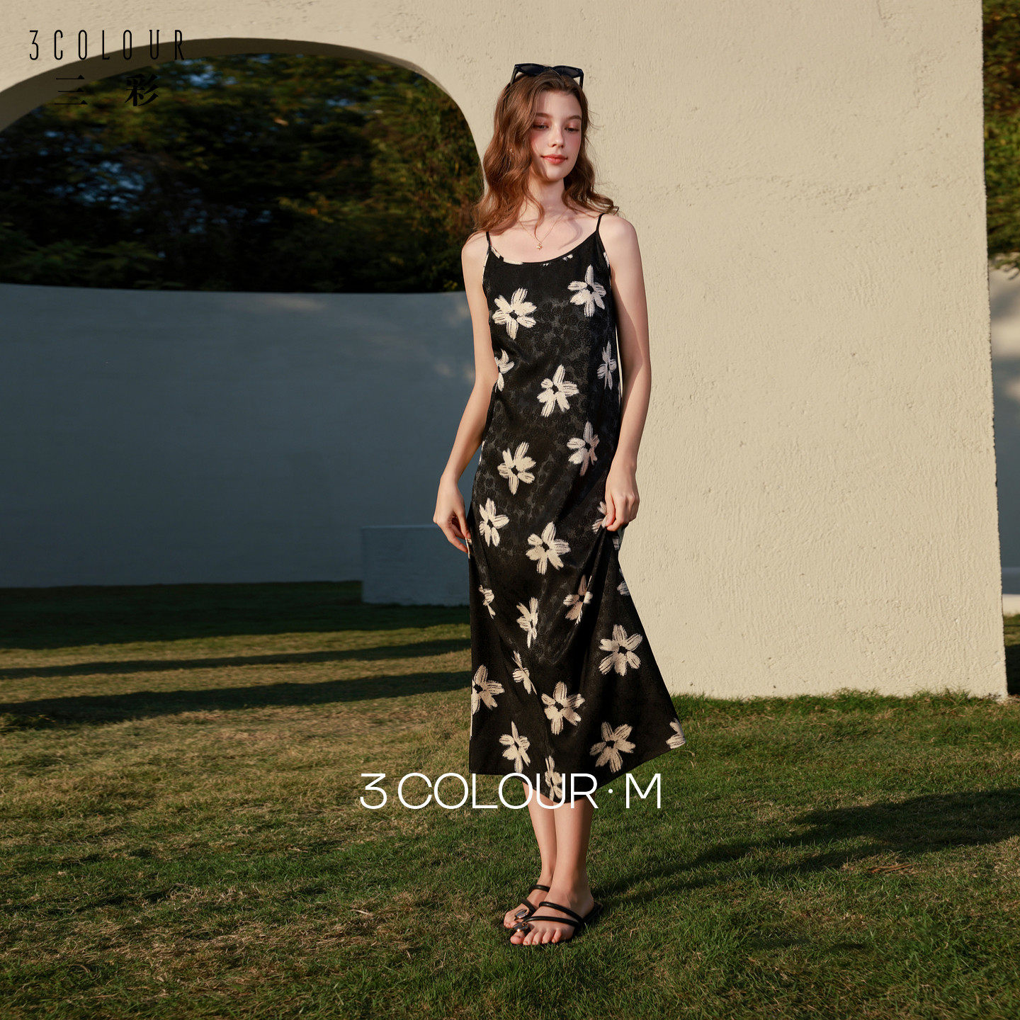 三彩2026春季新款吊带无袖碎花裙大花法式连衣裙直筒内搭长裙女M