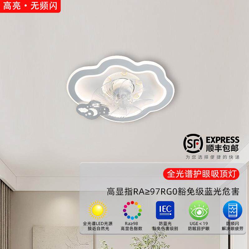 室卧风扇灯吸顶一体餐厅装416全扇光谱书房智能语音带电风中山家