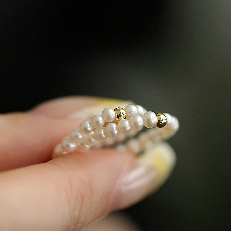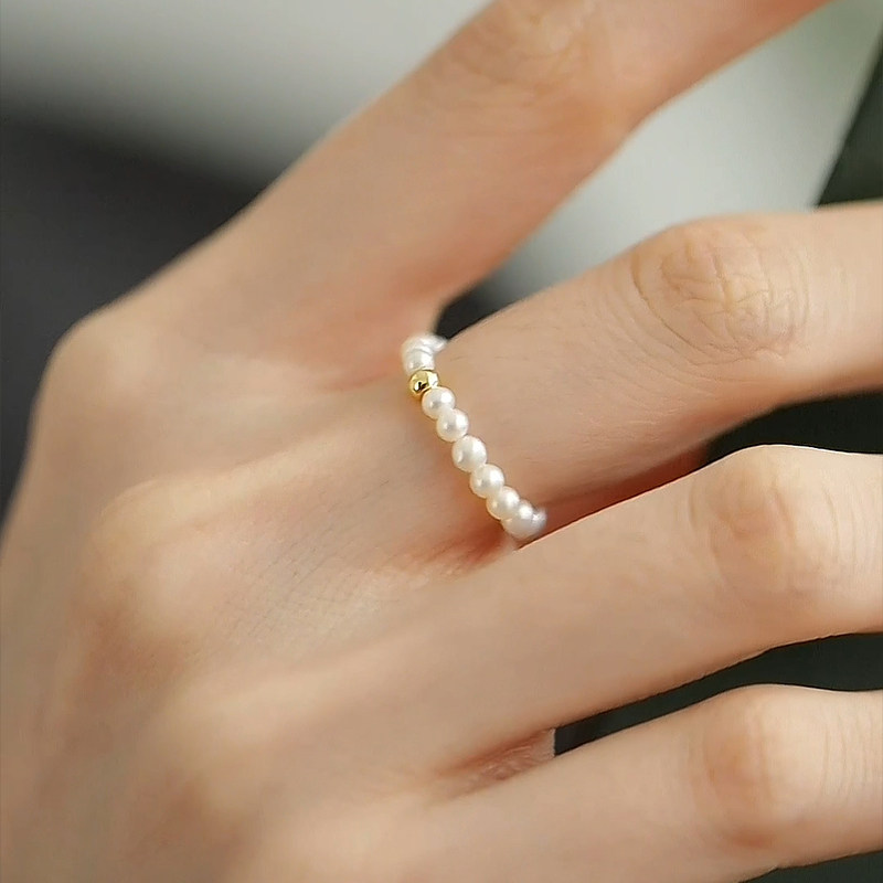 珍氏珠宝天然淡水baby珍珠戒指18k金 高级感食指戒 指环尾戒女款