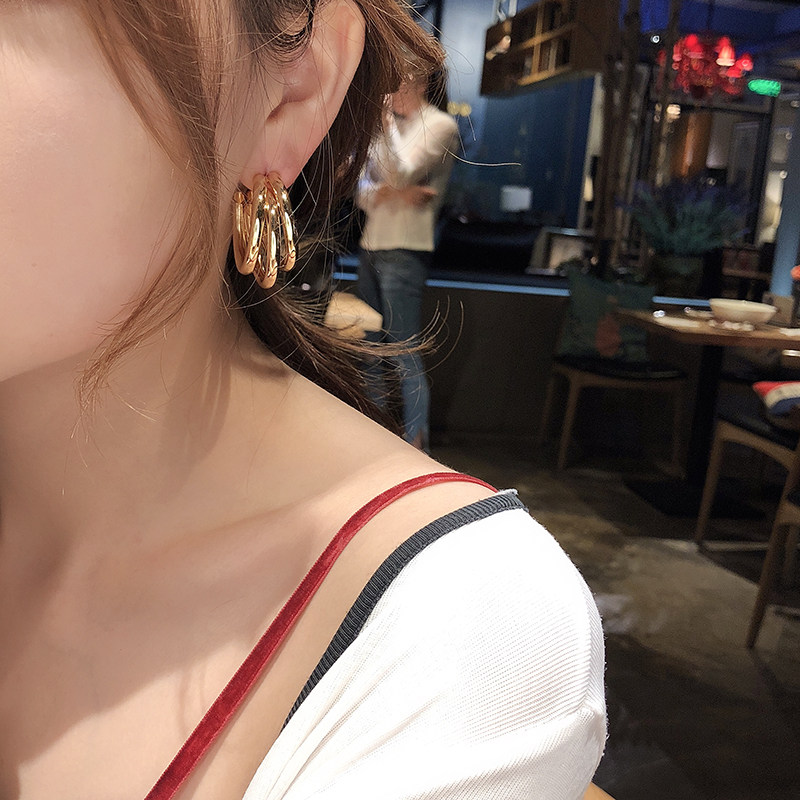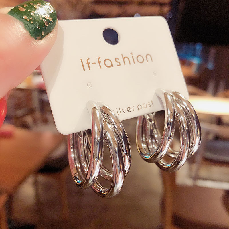s925纯银耳钉气质韩国东大门韩剧宋慧乔同款金属圆圈冷淡风耳环女