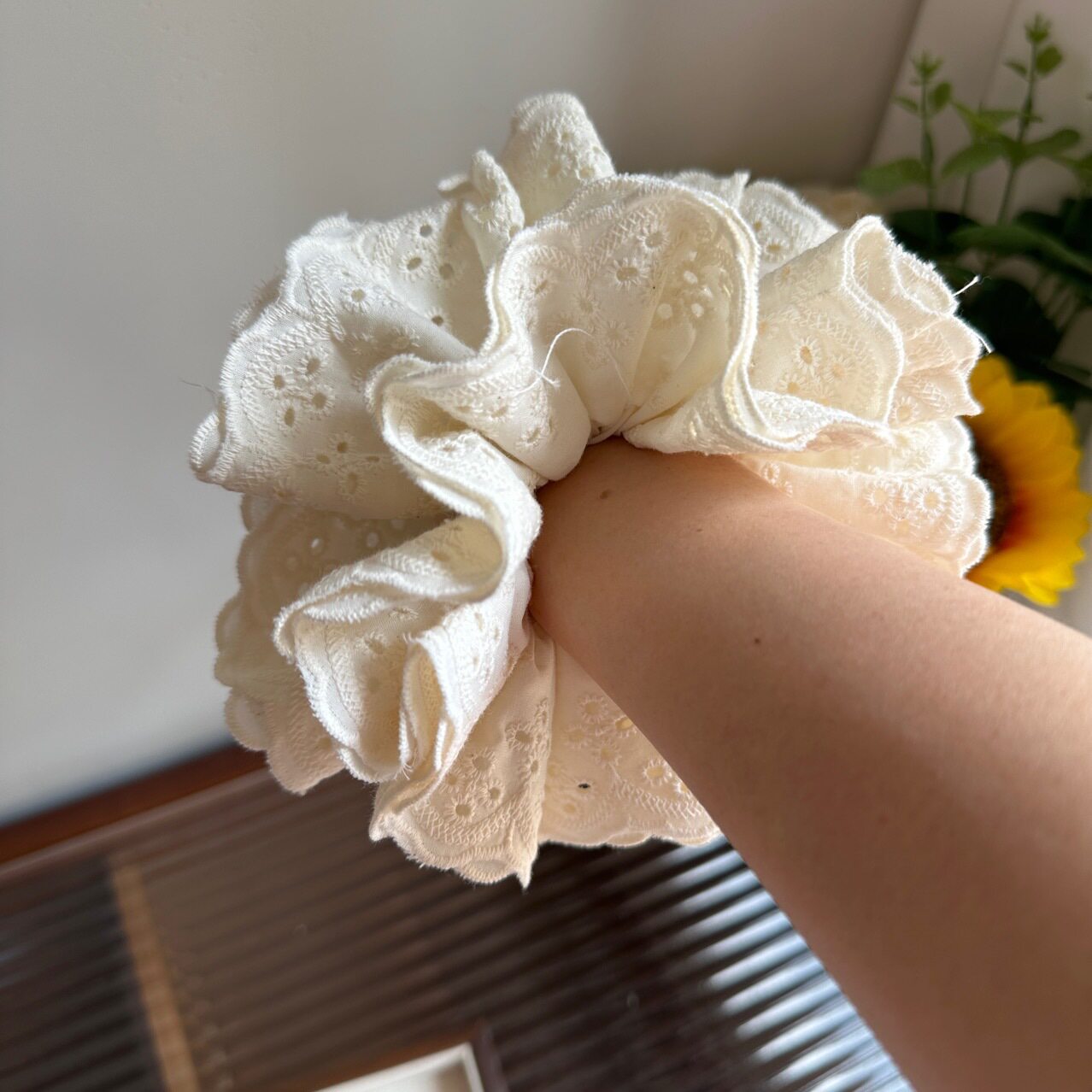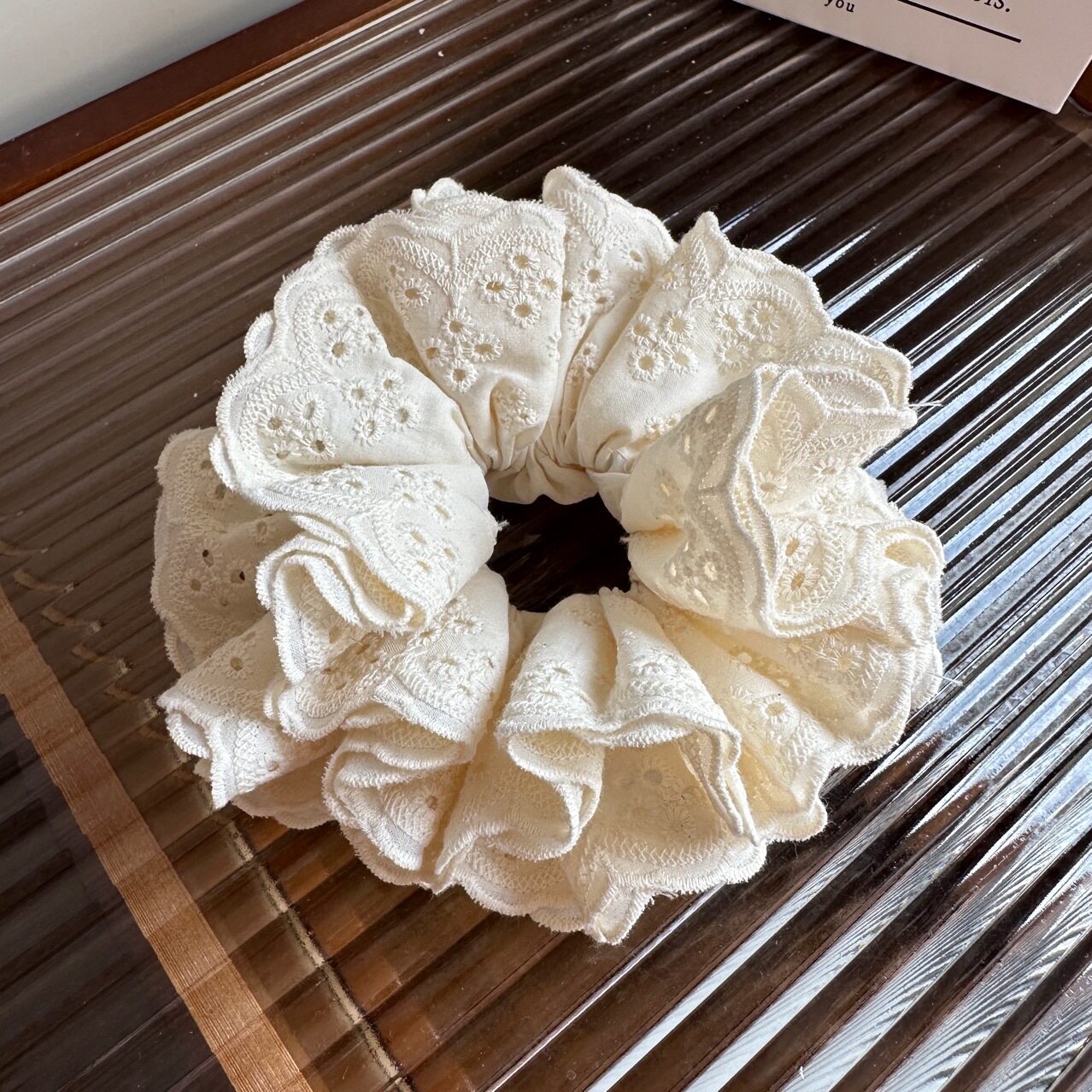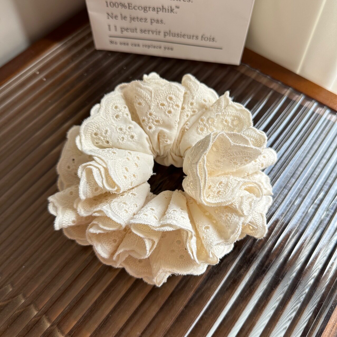 四层蕾丝法式刺绣棉布大肠发圈头绳米甜美少女可爱百搭丸子头发饰