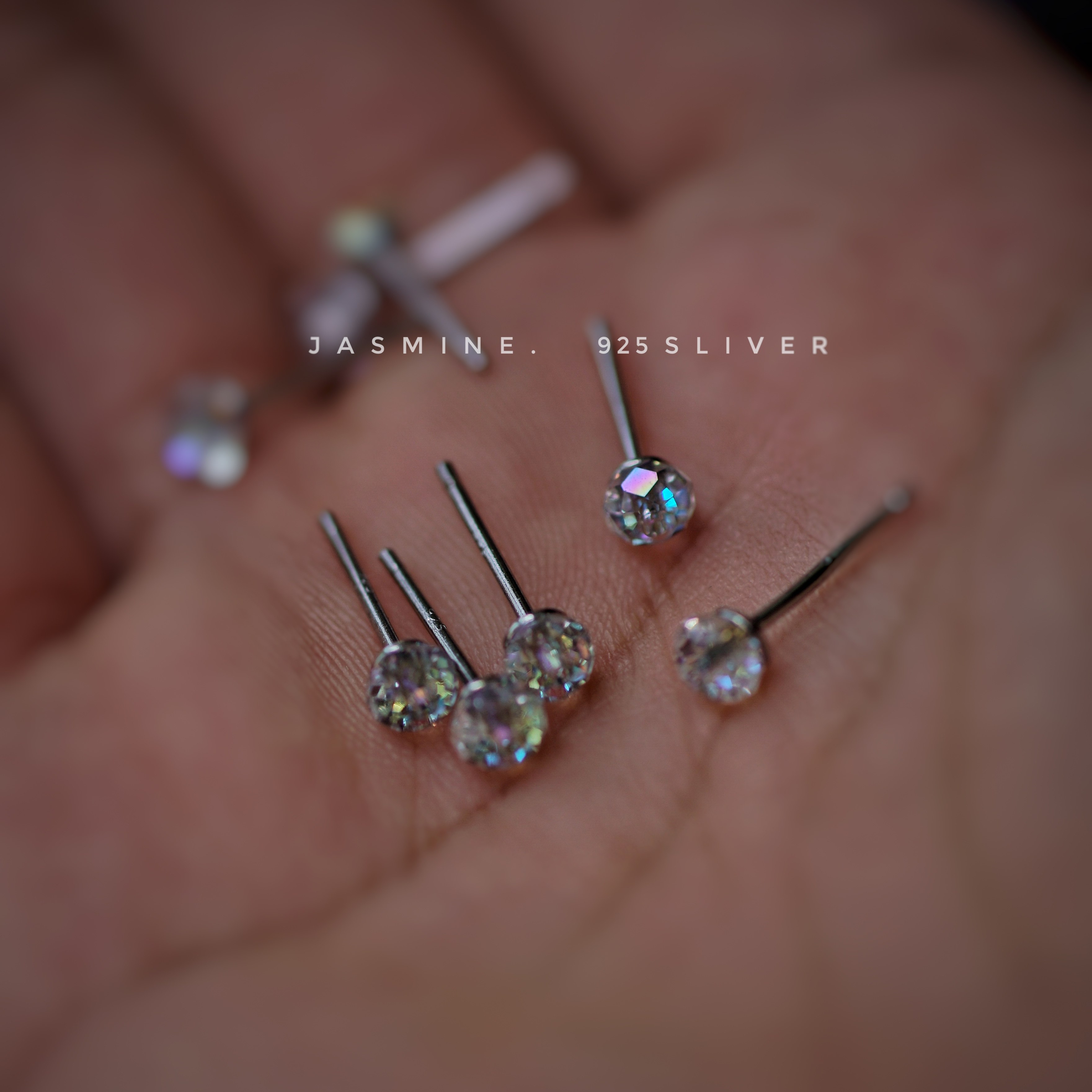 S925纯银偏光迷你水晶小耳钉基础款养耳洞多切面百搭款锆石耳骨钉