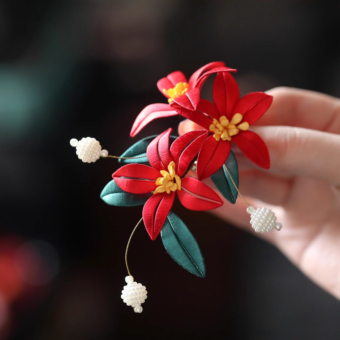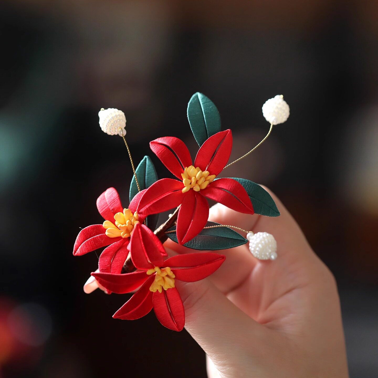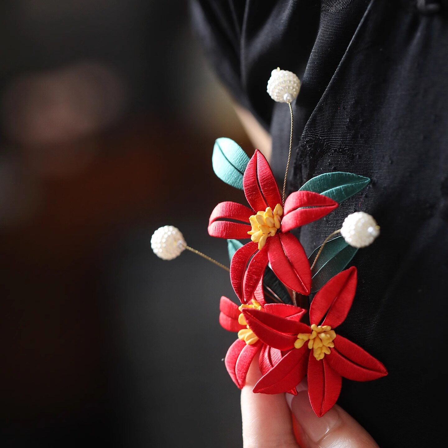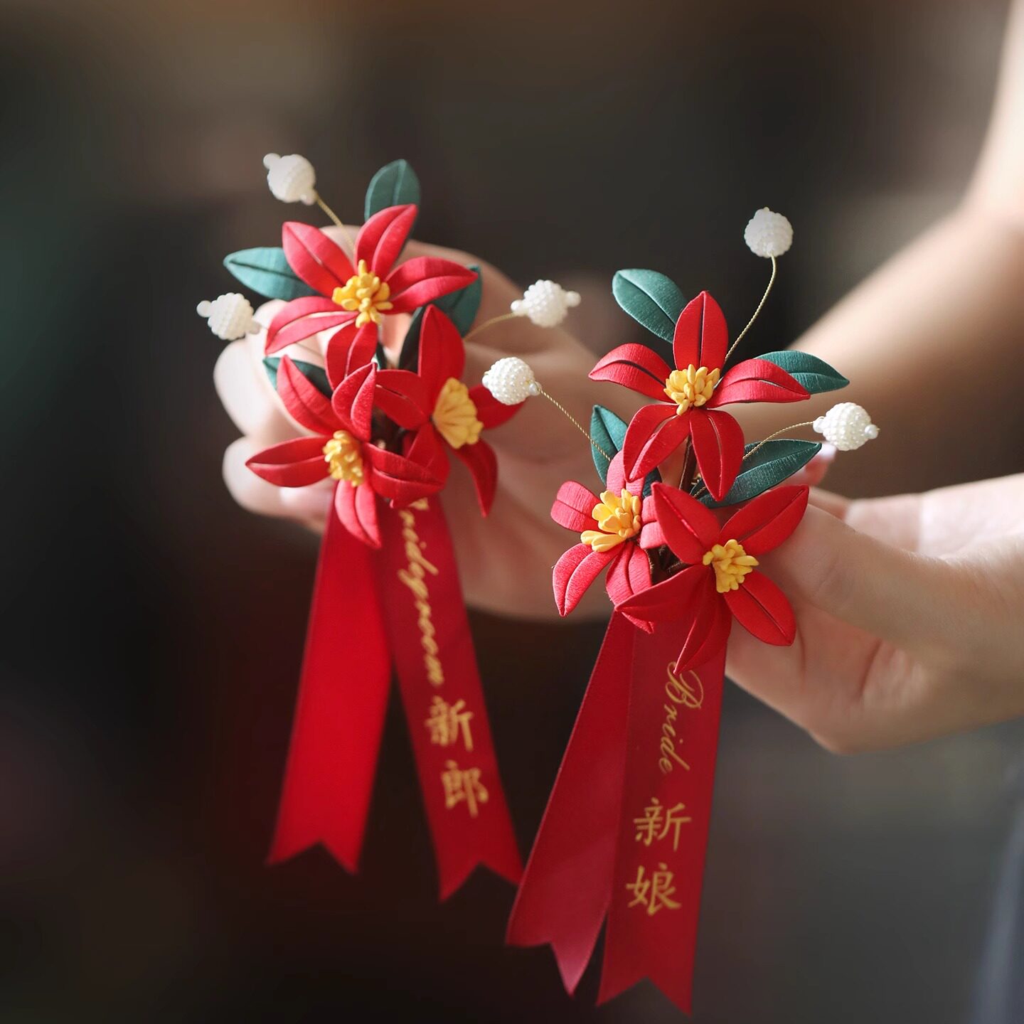 新中式手工缠花胸针高级感红色新郎新娘结婚胸花别针配饰父母襟花
