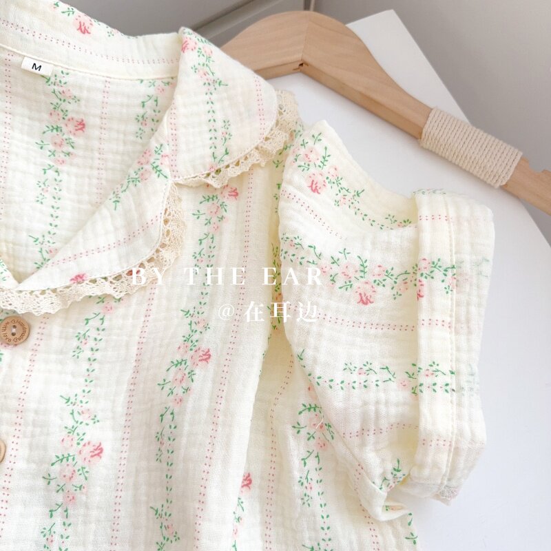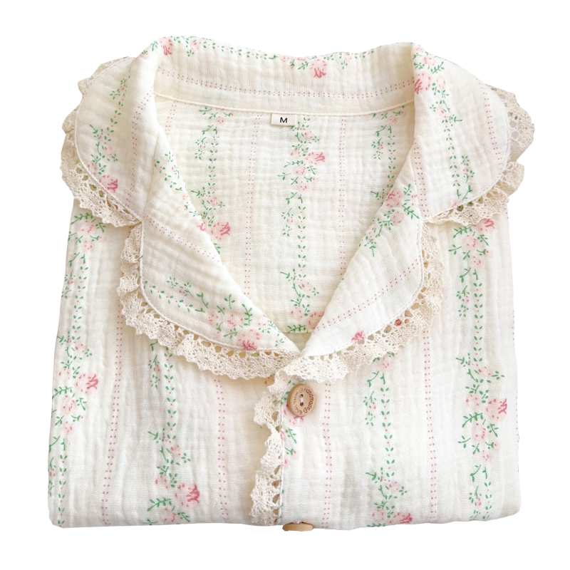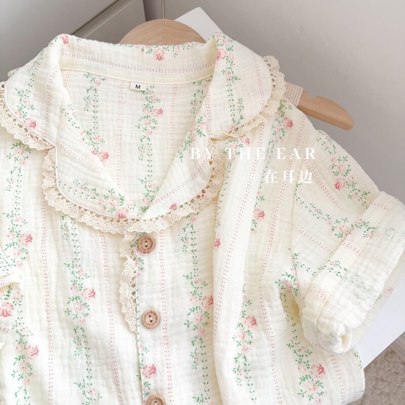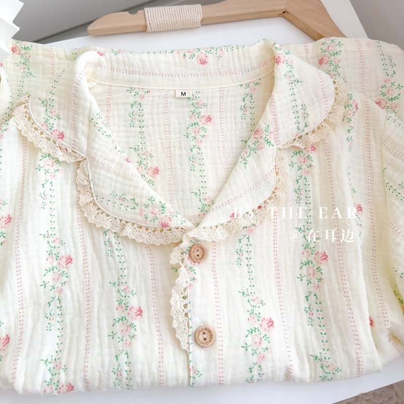 法式浪漫蕾丝花边田园碎花睡衣女士春秋夏季纯棉长袖薄款家居服