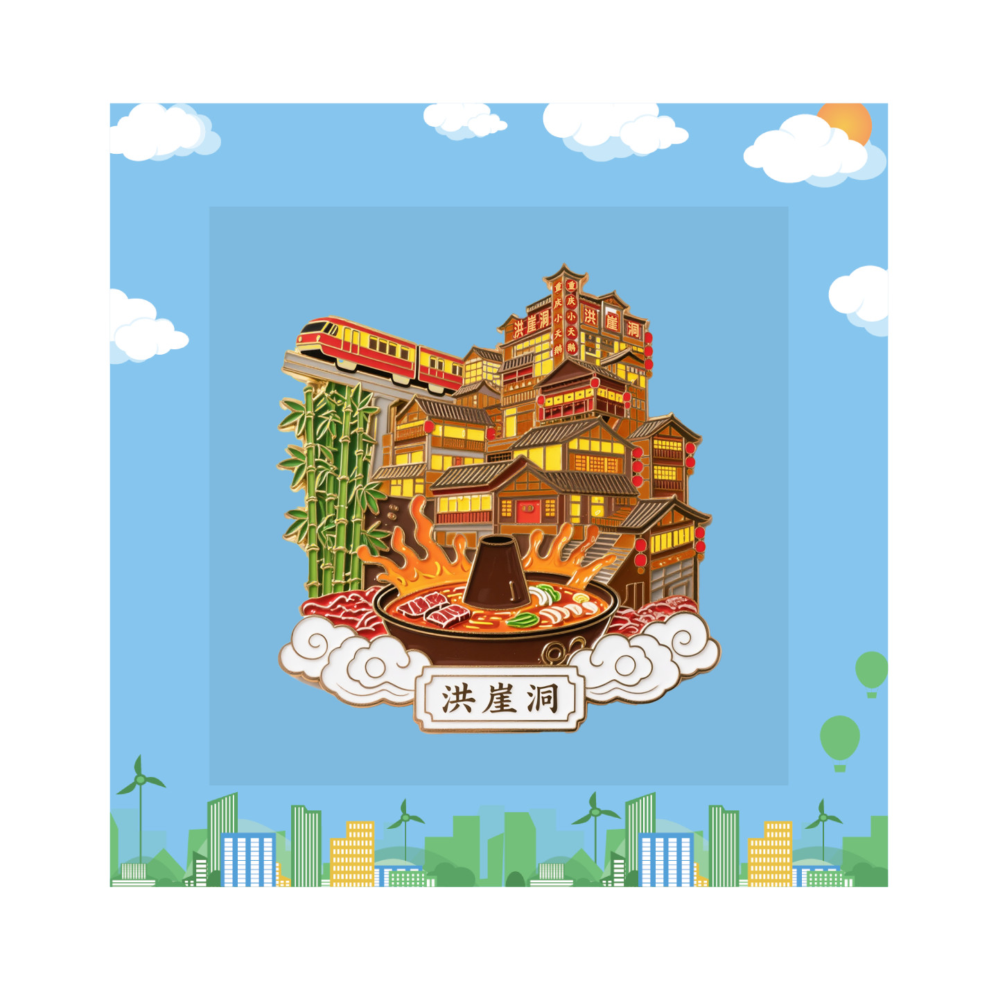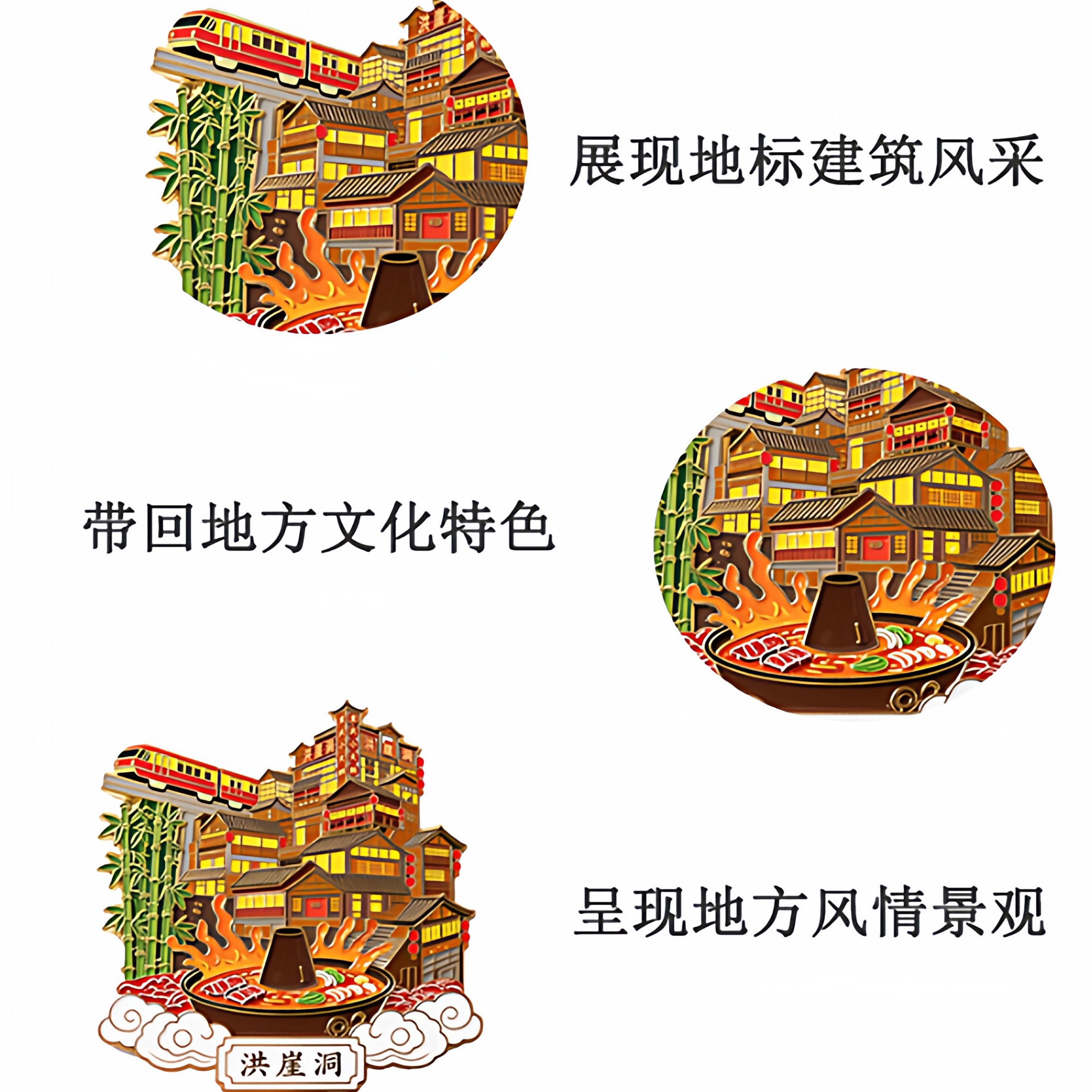 重庆洪崖洞冰箱贴文创城市火锅高铁旅游景点金属纪念品礼物伴手礼