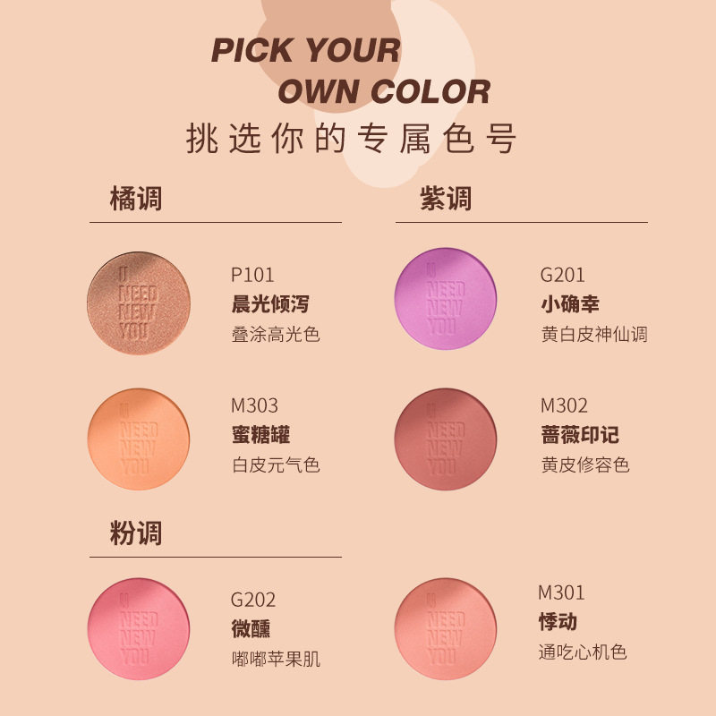 unny腮红正品高光修容一体盘女胭脂膏单色双拼色自然裸妆哑光紫色