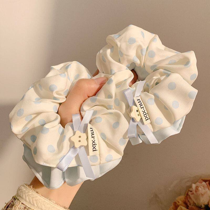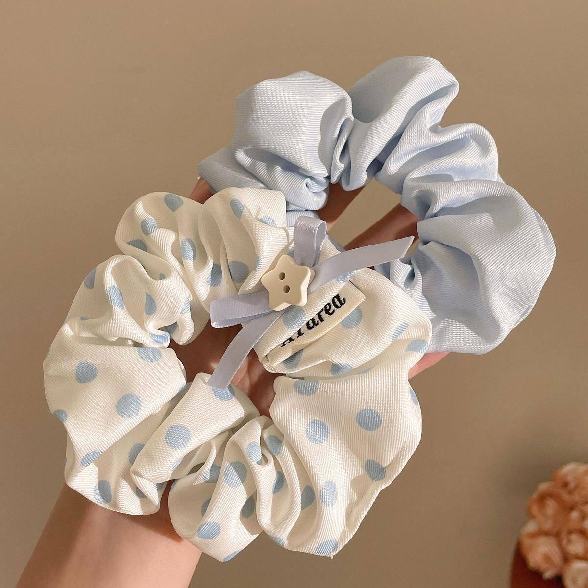 韩系蓝色波点大肠发圈女高级感慵懒风扎头发低马尾发饰简约头绳