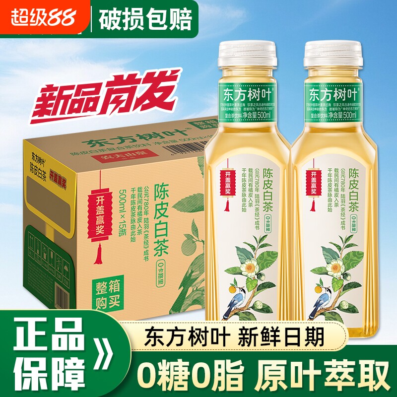 开盖赢奖农夫山泉东方树叶陈皮白茶500ml*15整箱茉莉花茶饮料普洱