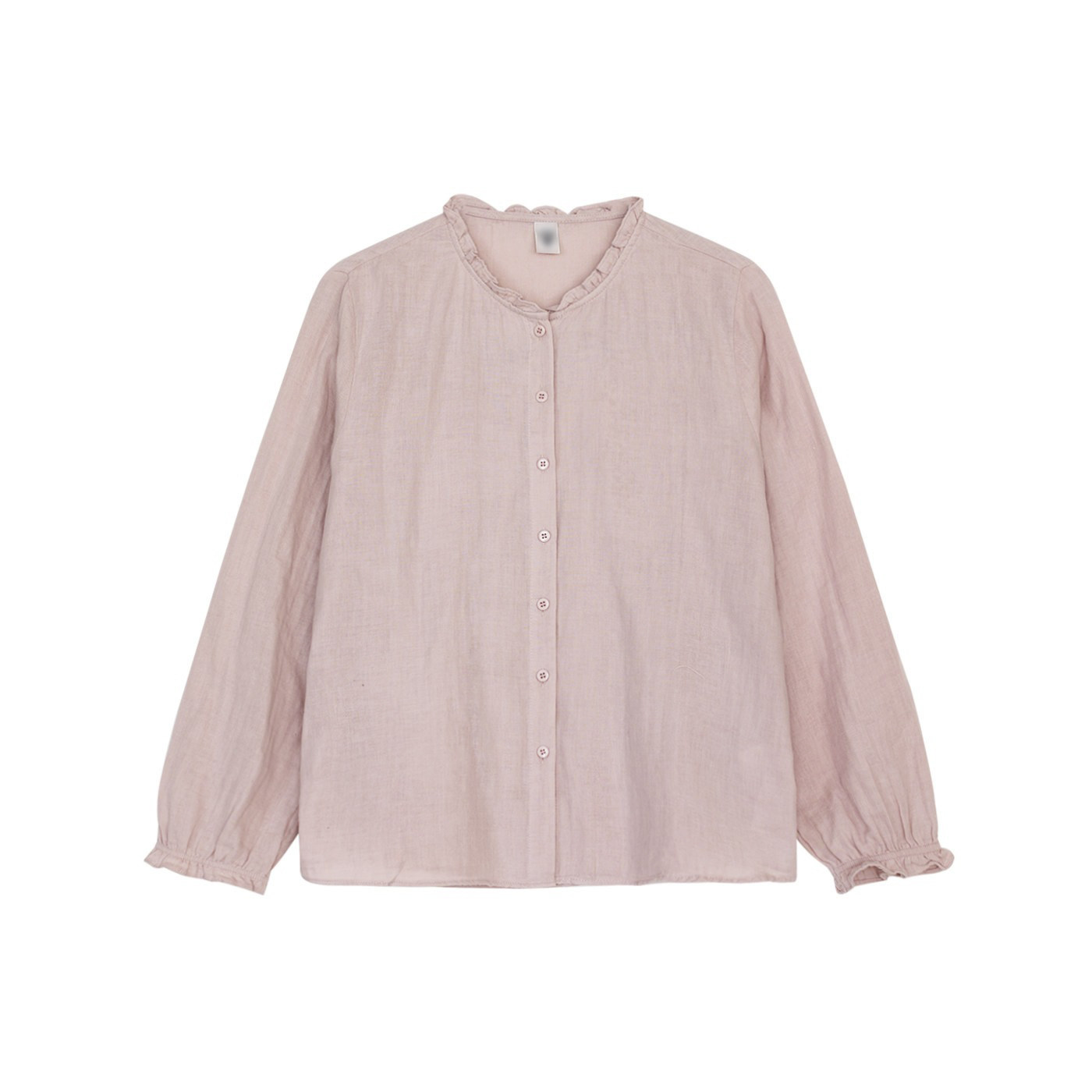 咖咪羽衬衫女春秋新款双层棉纱木耳花边减龄长袖衬衫百搭上衣