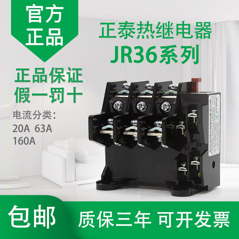原装正泰热继电器JR36-20/63/160A电机380v 三相电流可调过载保护