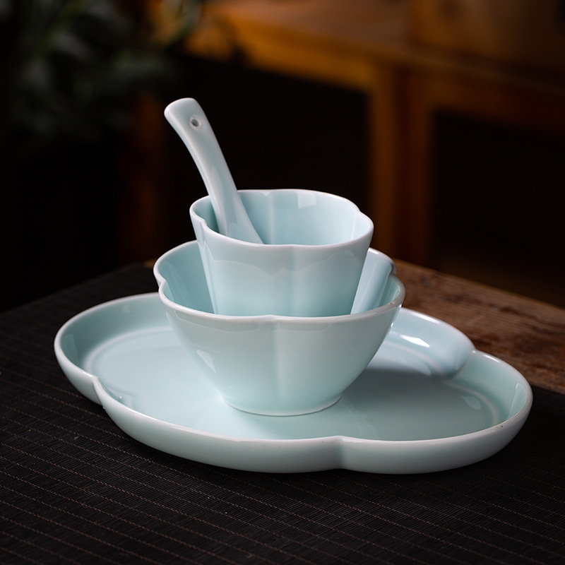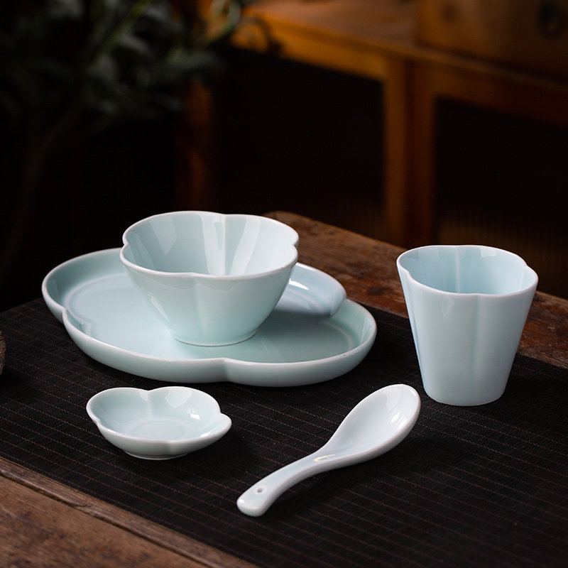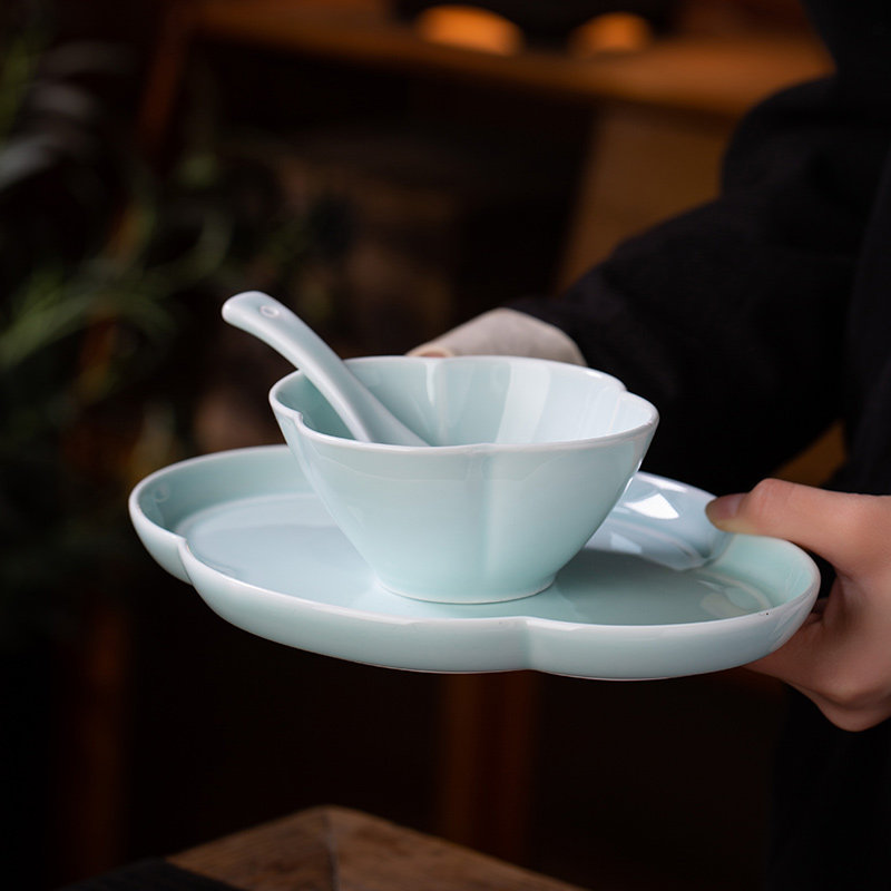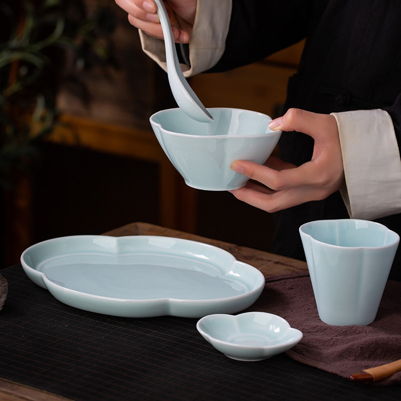 景德镇中式酒店摆台碗盘杯套装高端商用创意餐厅釉下彩摆台四件套
