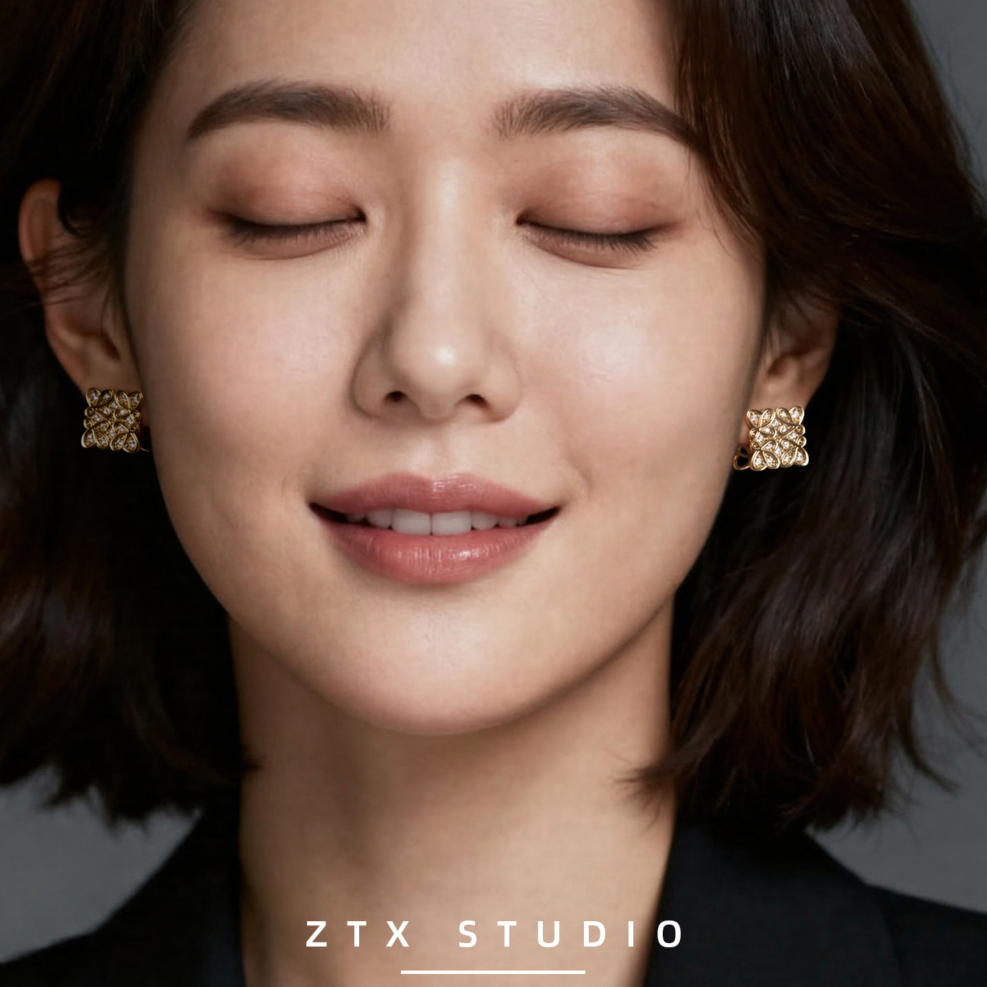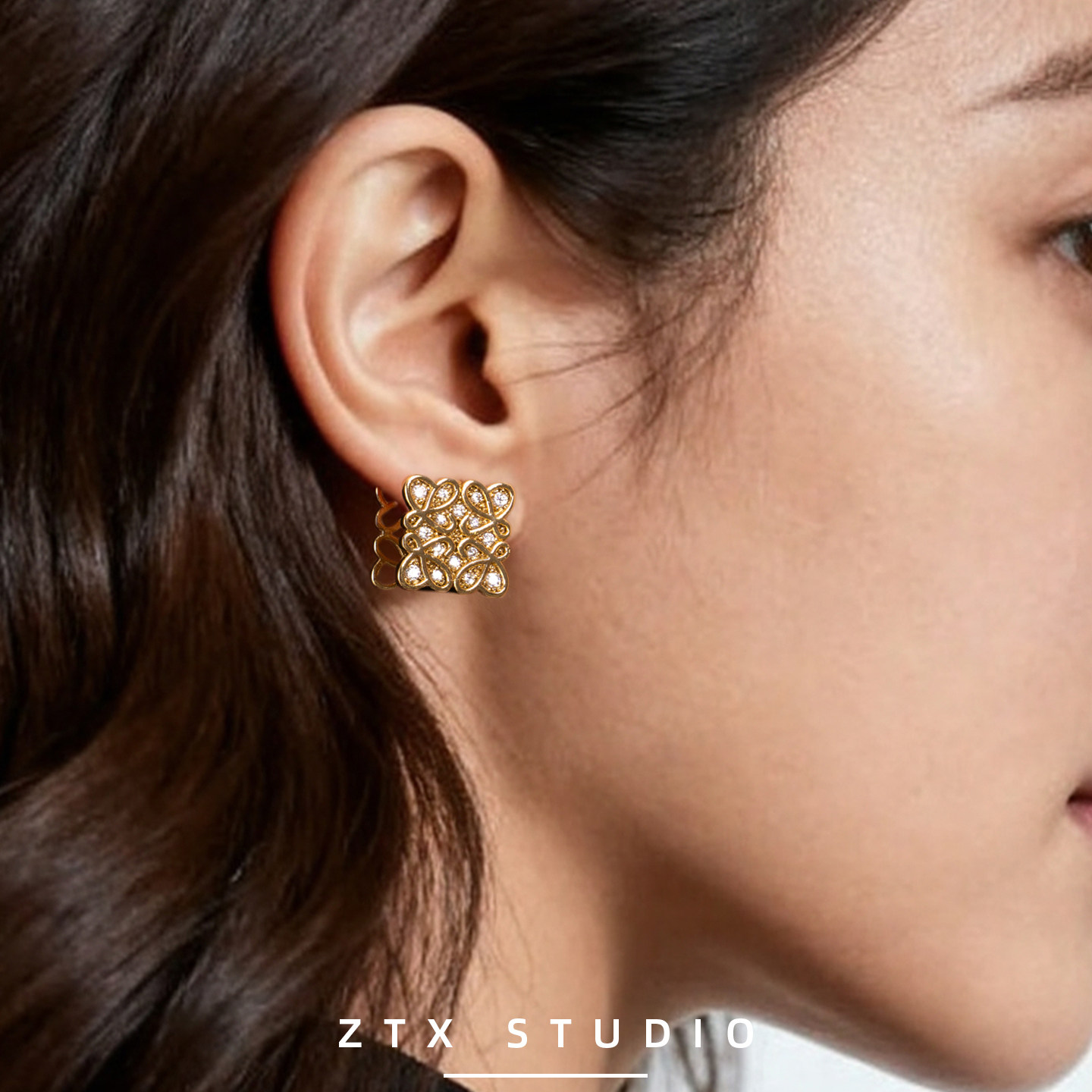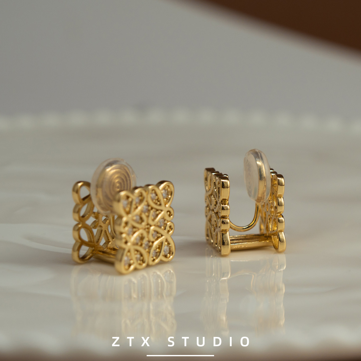ZTX 轻奢满钻耳夹无耳洞女新款蚊香盘耳饰复古高级感气质无痛耳环