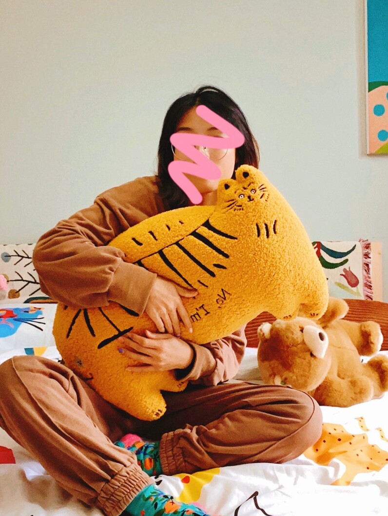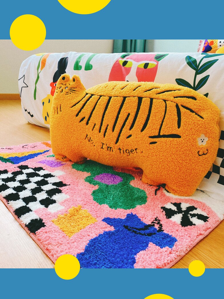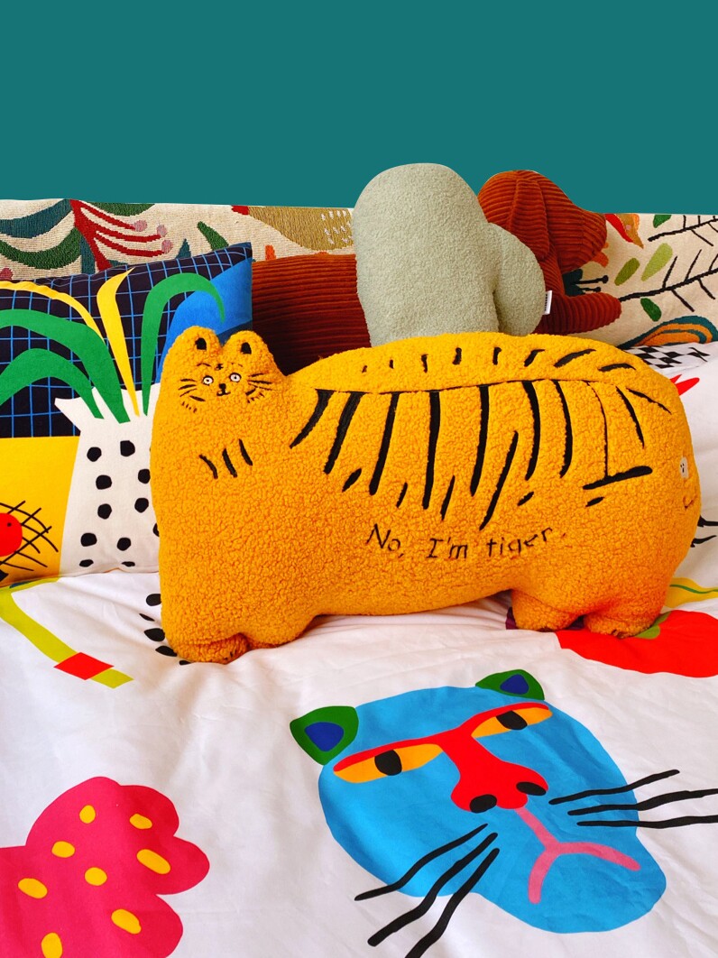 有蒂棵棵发财抱枕老虎靠垫办公室床头沙发原创设计午睡腰靠久坐