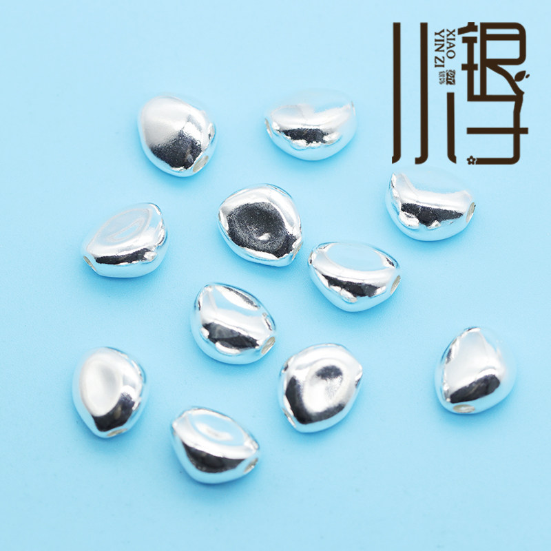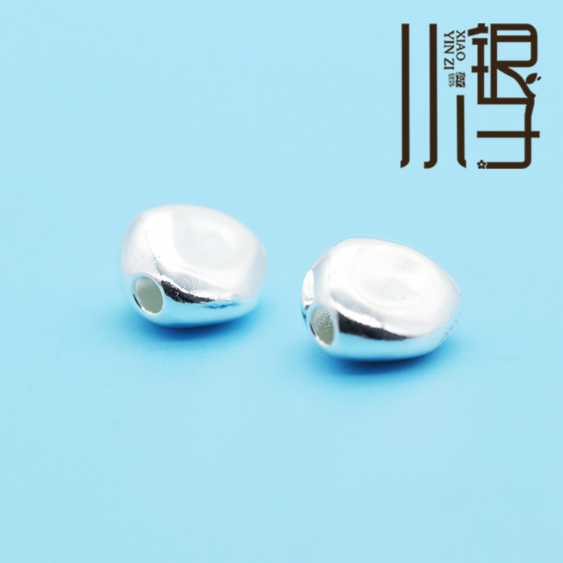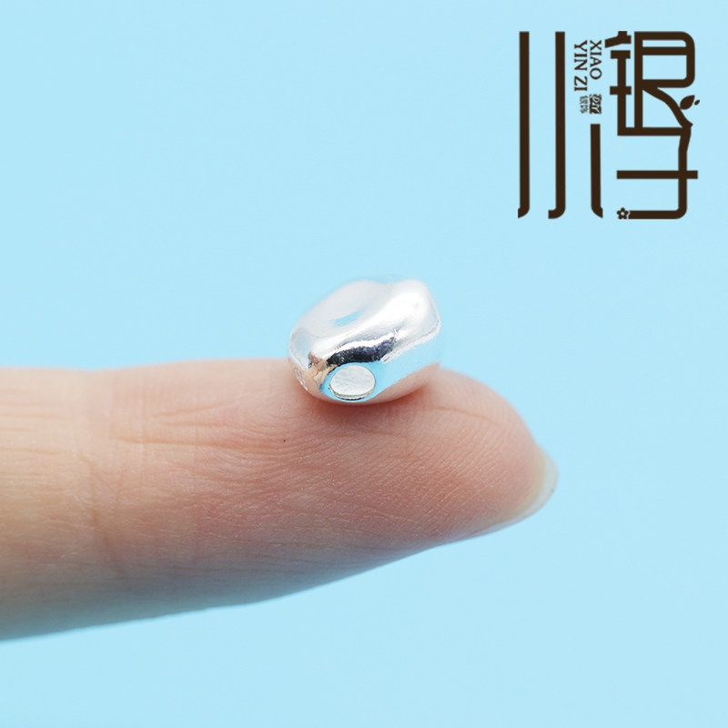 素银隔珠 光面不规则凹凸面石头桶珠S925纯银银饰DIY编绳串珠配件