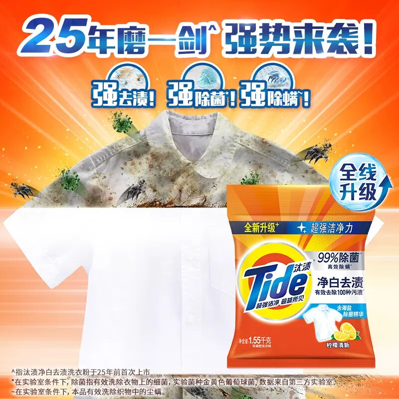 汰渍净白无磷洗衣粉家庭实惠小包装508g海盐高效除螨机洗手洗去渍