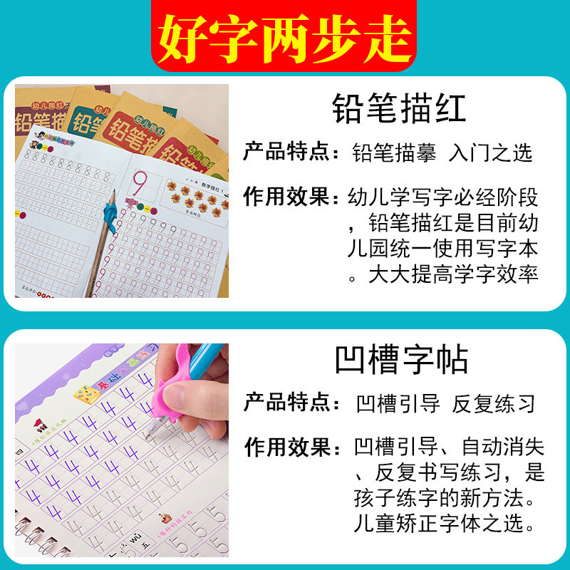 幼儿园描红本儿童练字帖初学者铅笔凹槽学前中大班写数字拼音本子