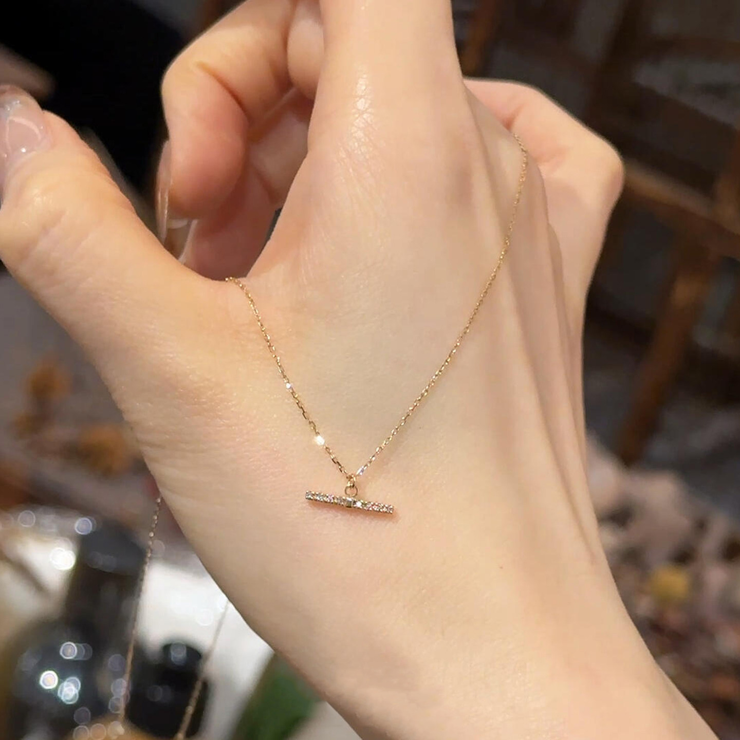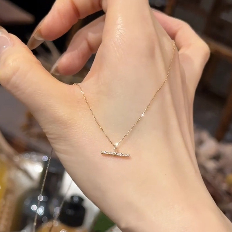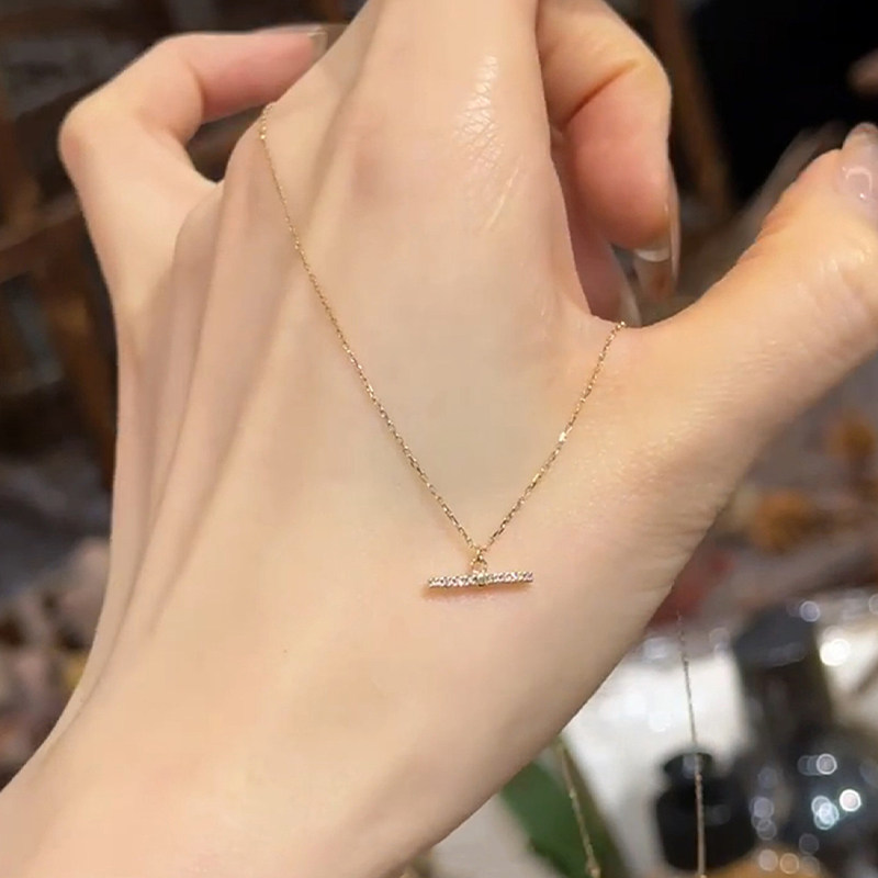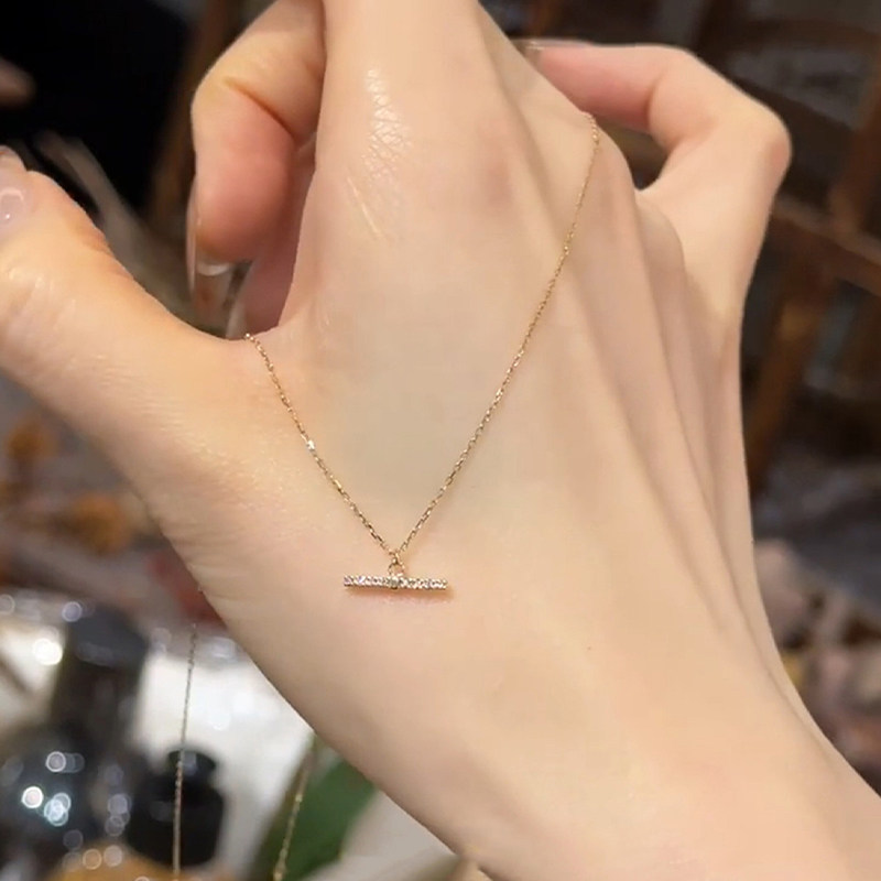 S925纯银金色满钻一字平衡木项链女2026新爆款高级感锁骨链毛衣链