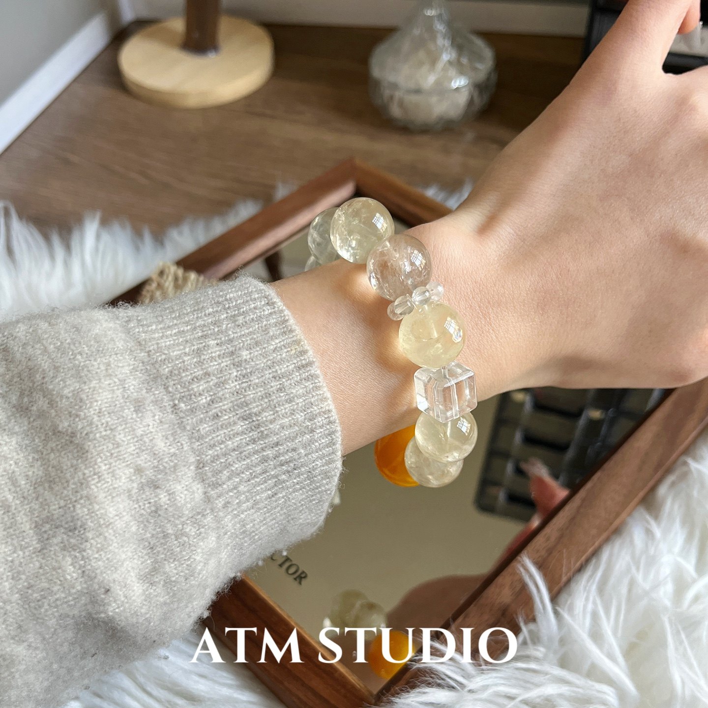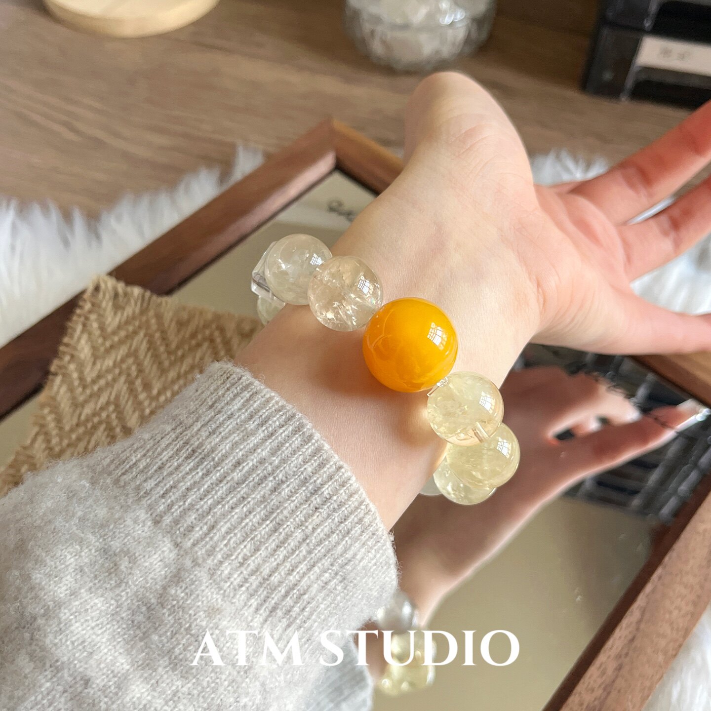 珍藏版柠檬雪宝溏心黄玛瑙黄水晶招财水晶手串天然柠檬晶多宝手链