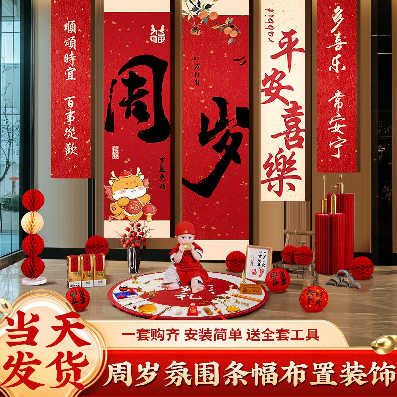 龙宝宝一周岁生日布置抓周礼道具用品中式挂布条幅场景装饰背景墙